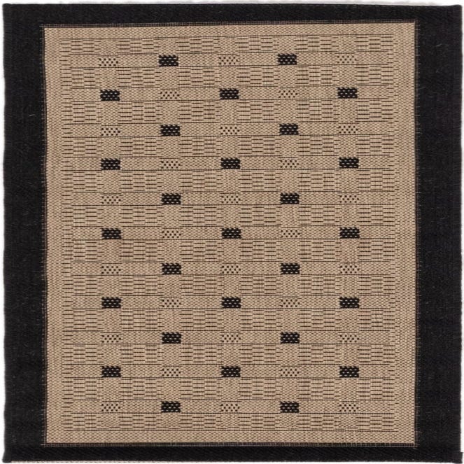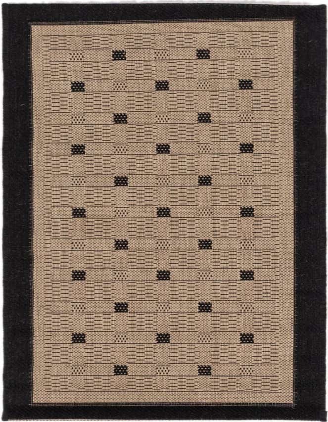 Primary color is Beige. Colors in this rug include: Beige, Black.