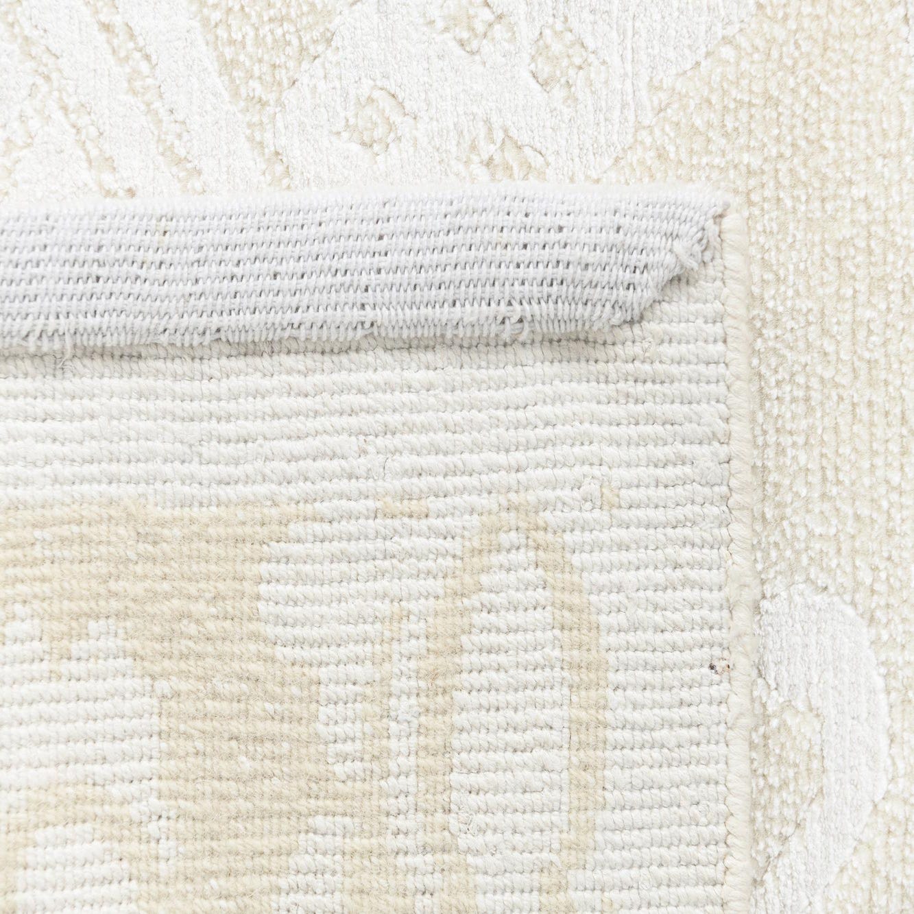 Primary color is Beige. Colors in this rug include: Beige, Ivory.