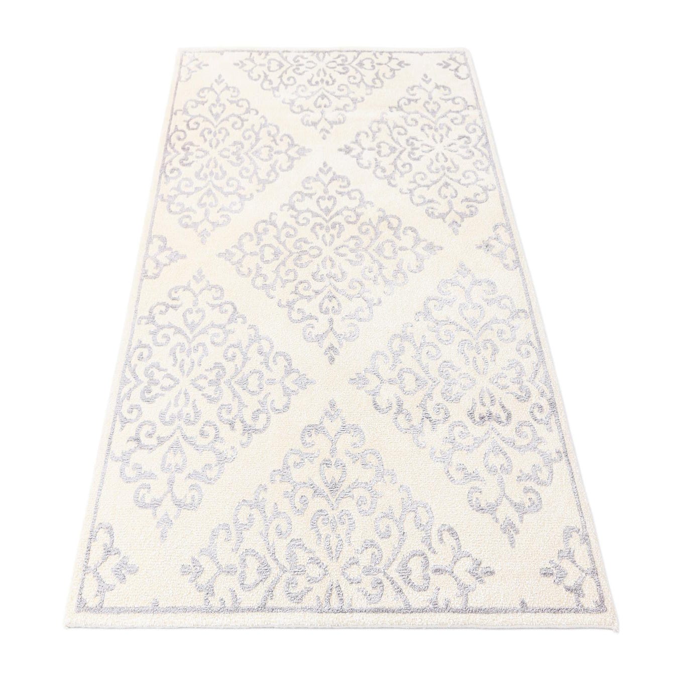 Primary color is Beige. Colors in this rug include: Beige, Cream, Gray, Silver.