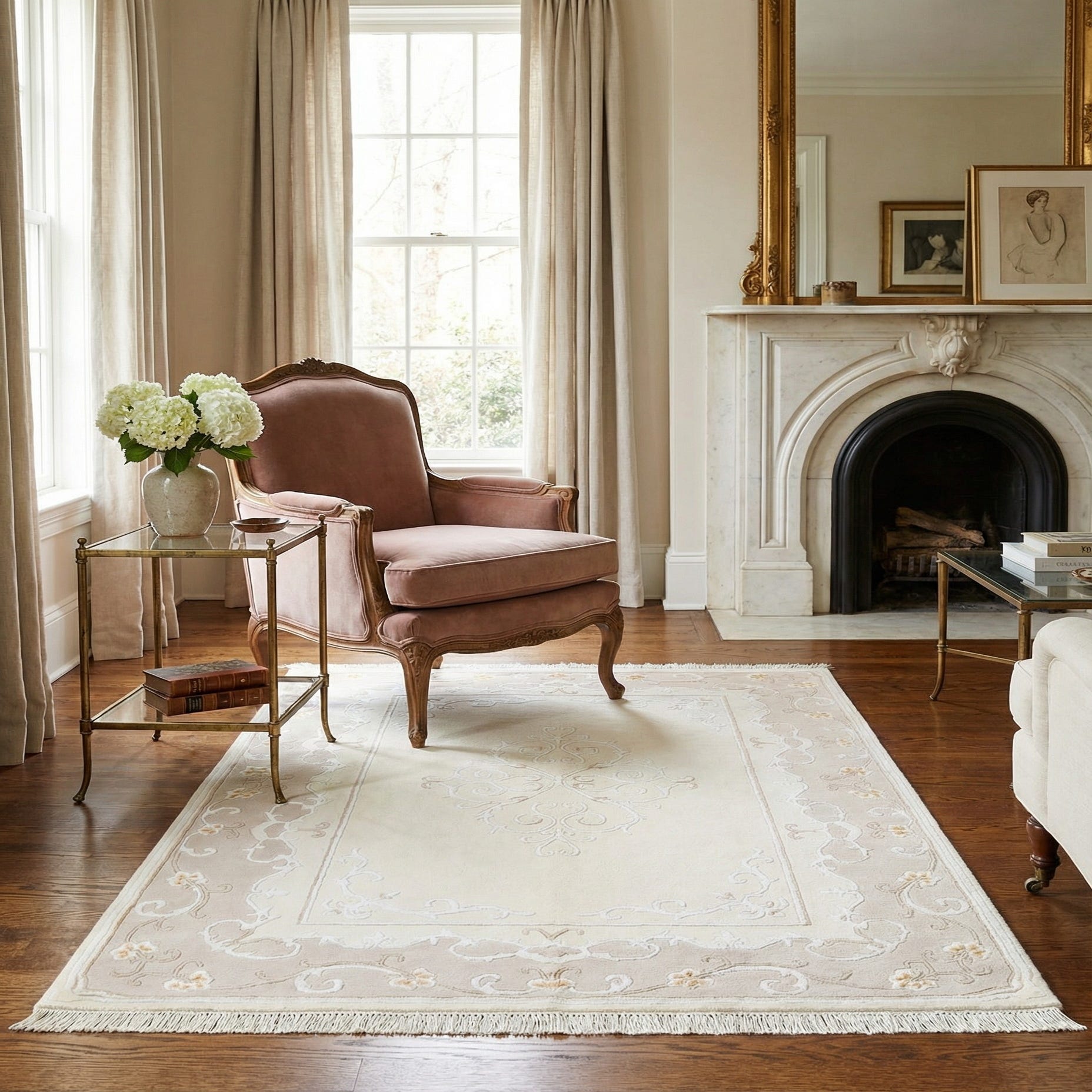 • Cream bouclĂ© accent chair