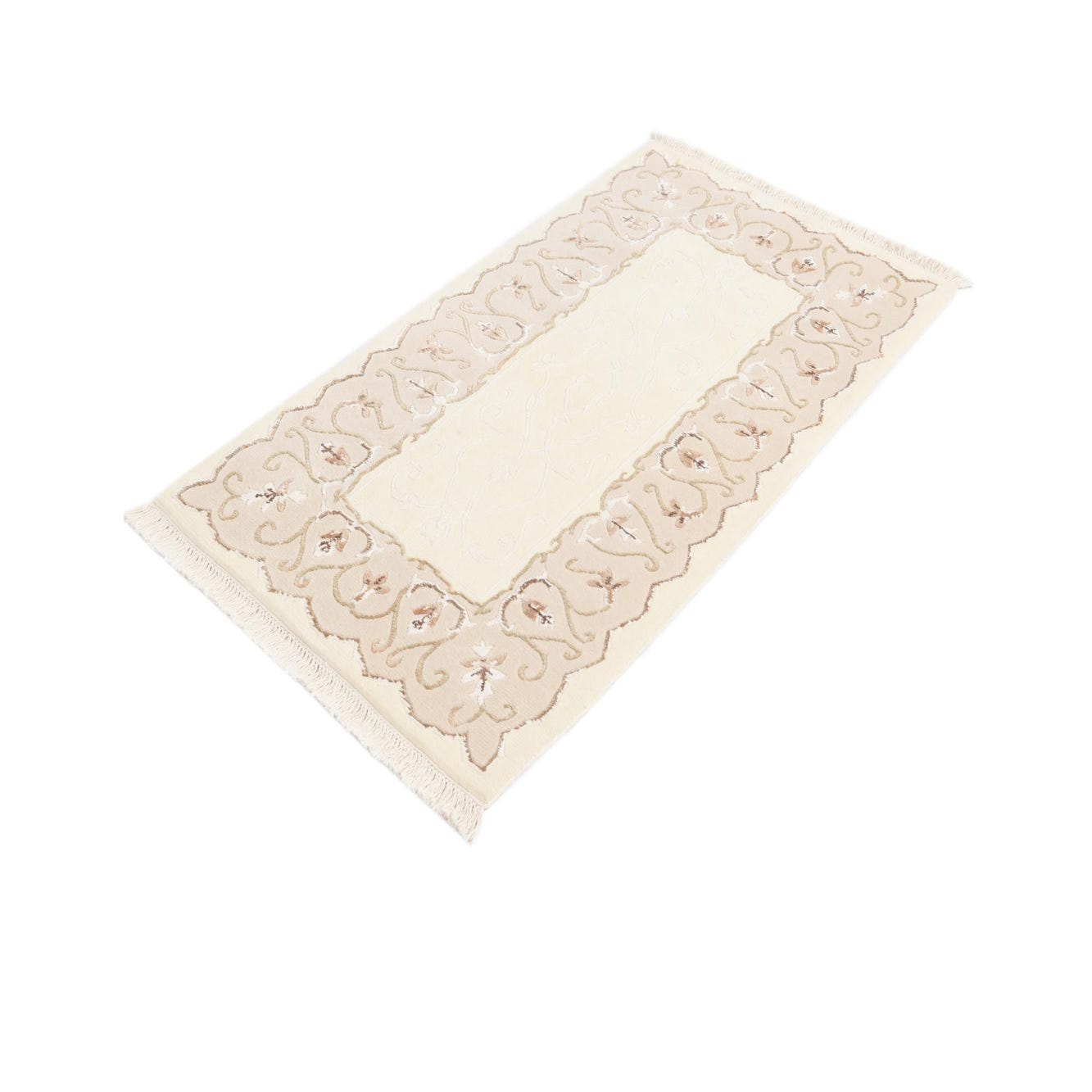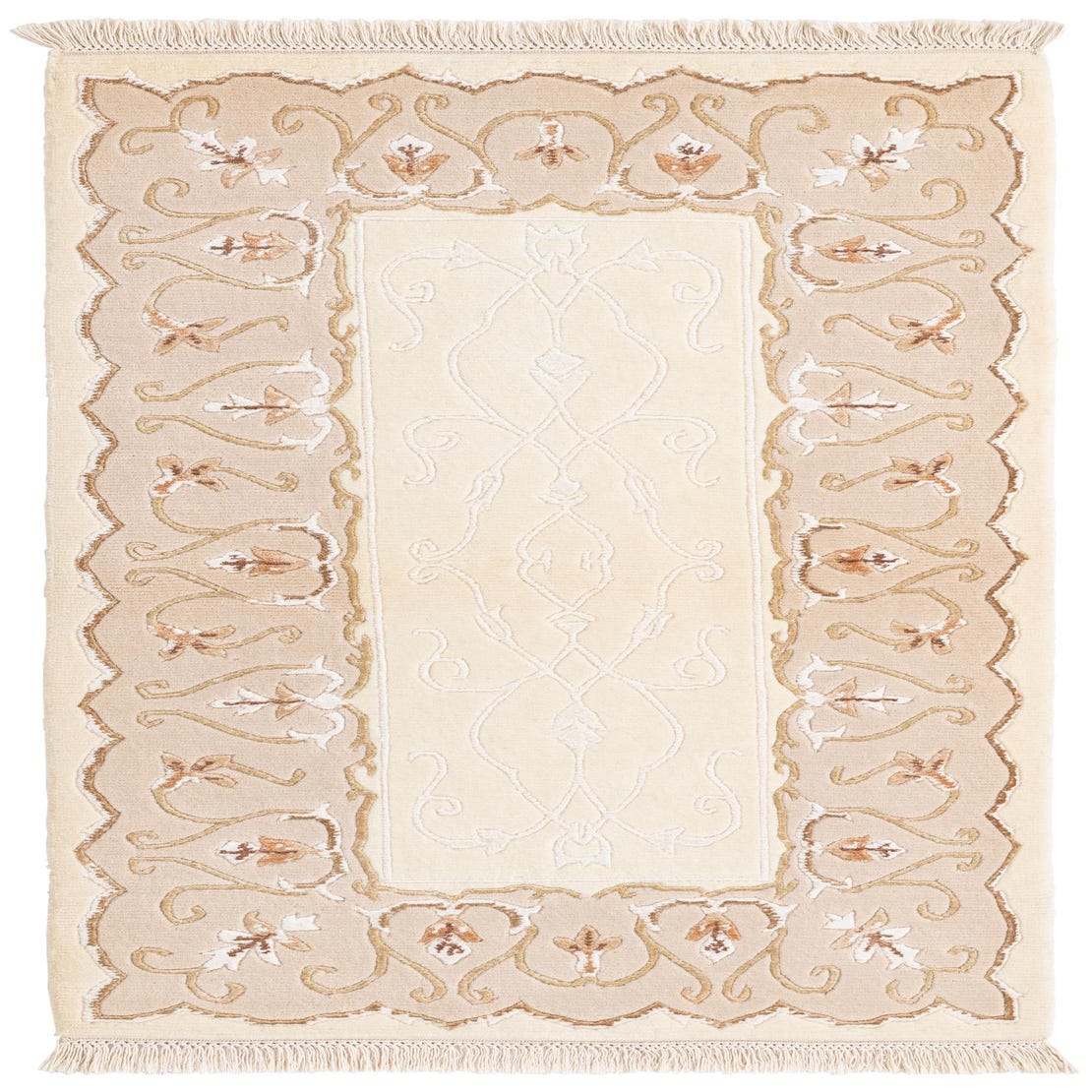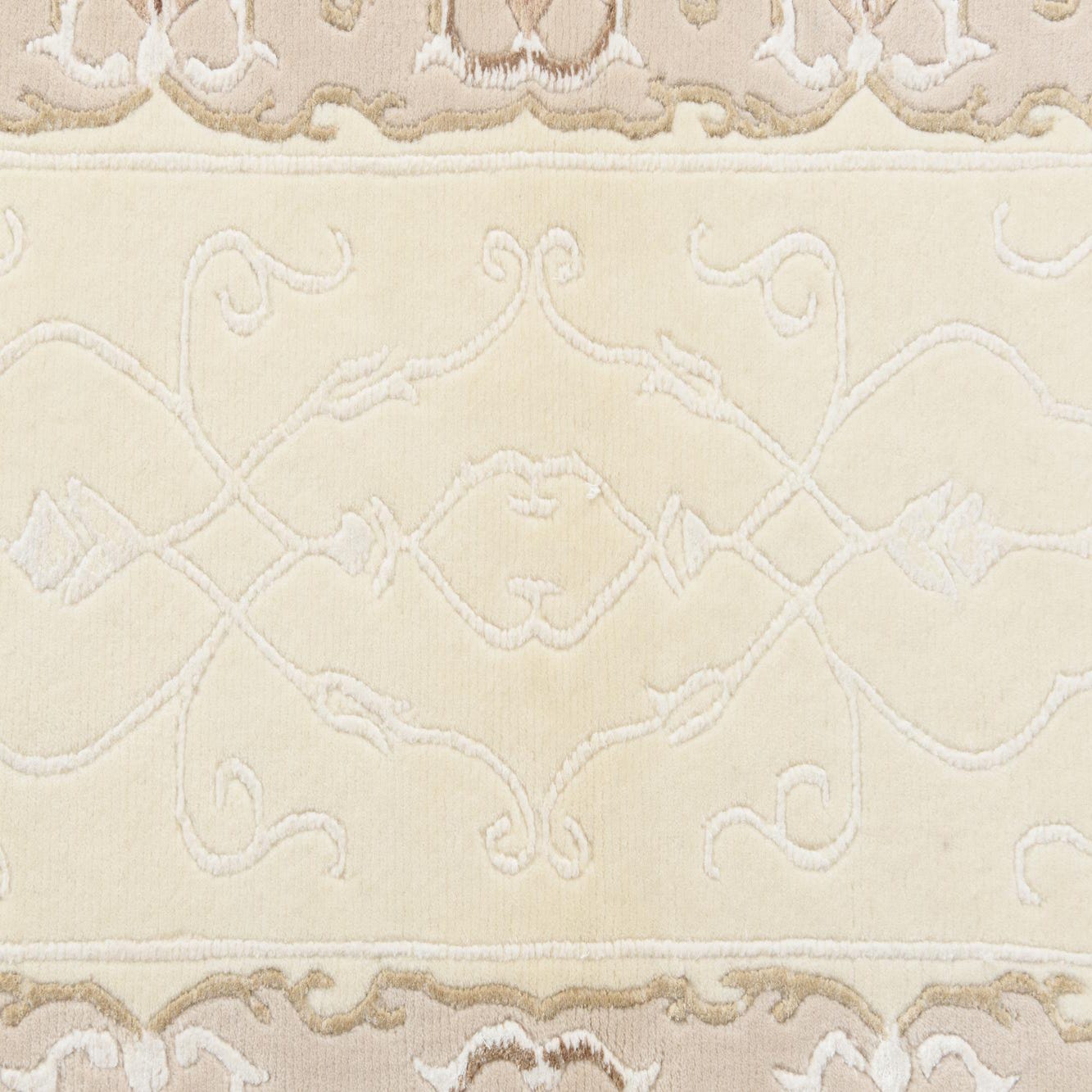 The Darya Collection 3x5 rug presents a harmonious blend of neutral beige as the background, complemented by an eloquent pattern that combines shades of brown, tan, and ivory. The hand-knotted construction of 100% wool brings both resilience and a plush texture underfoot, offering a tactile experience that emphasizes the rug's quality craftsmanship.