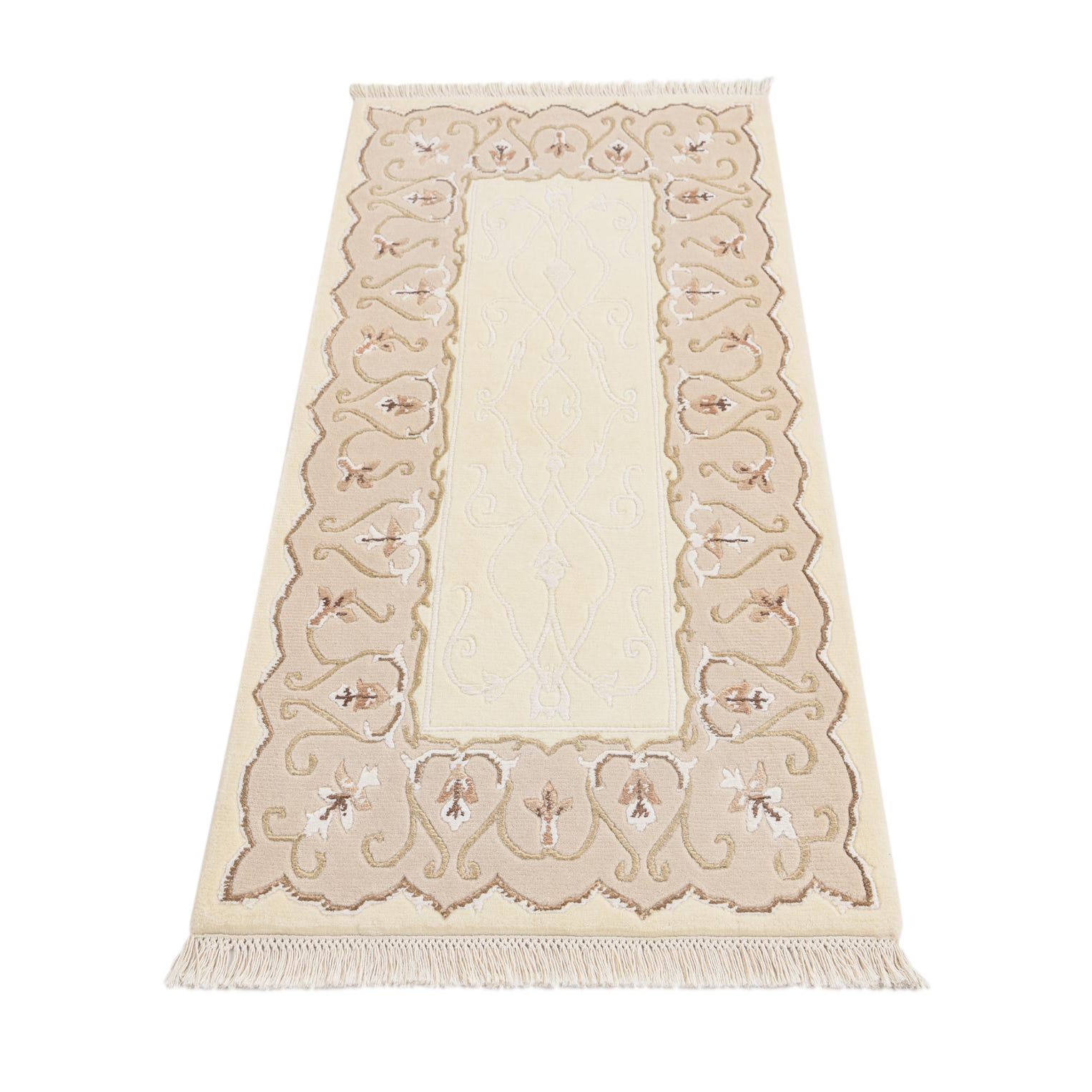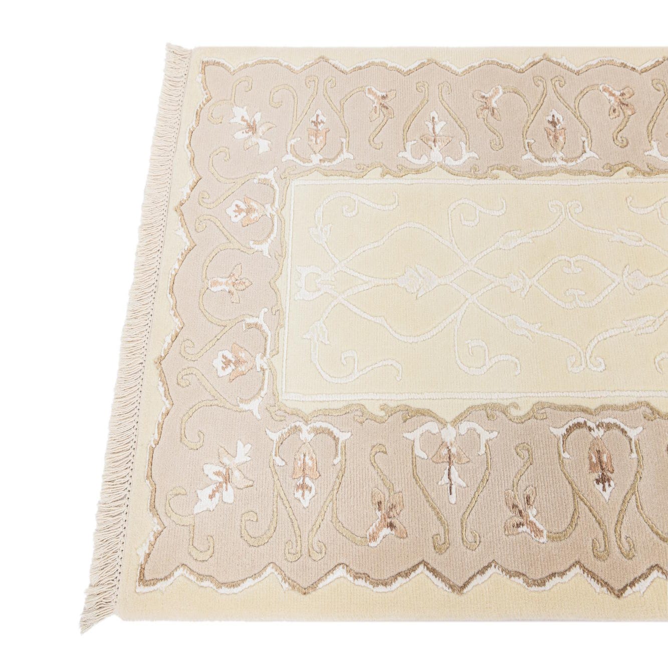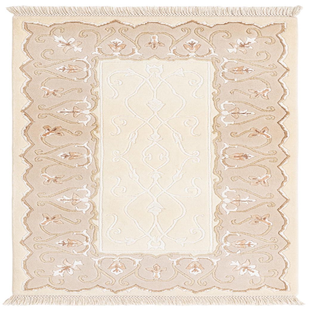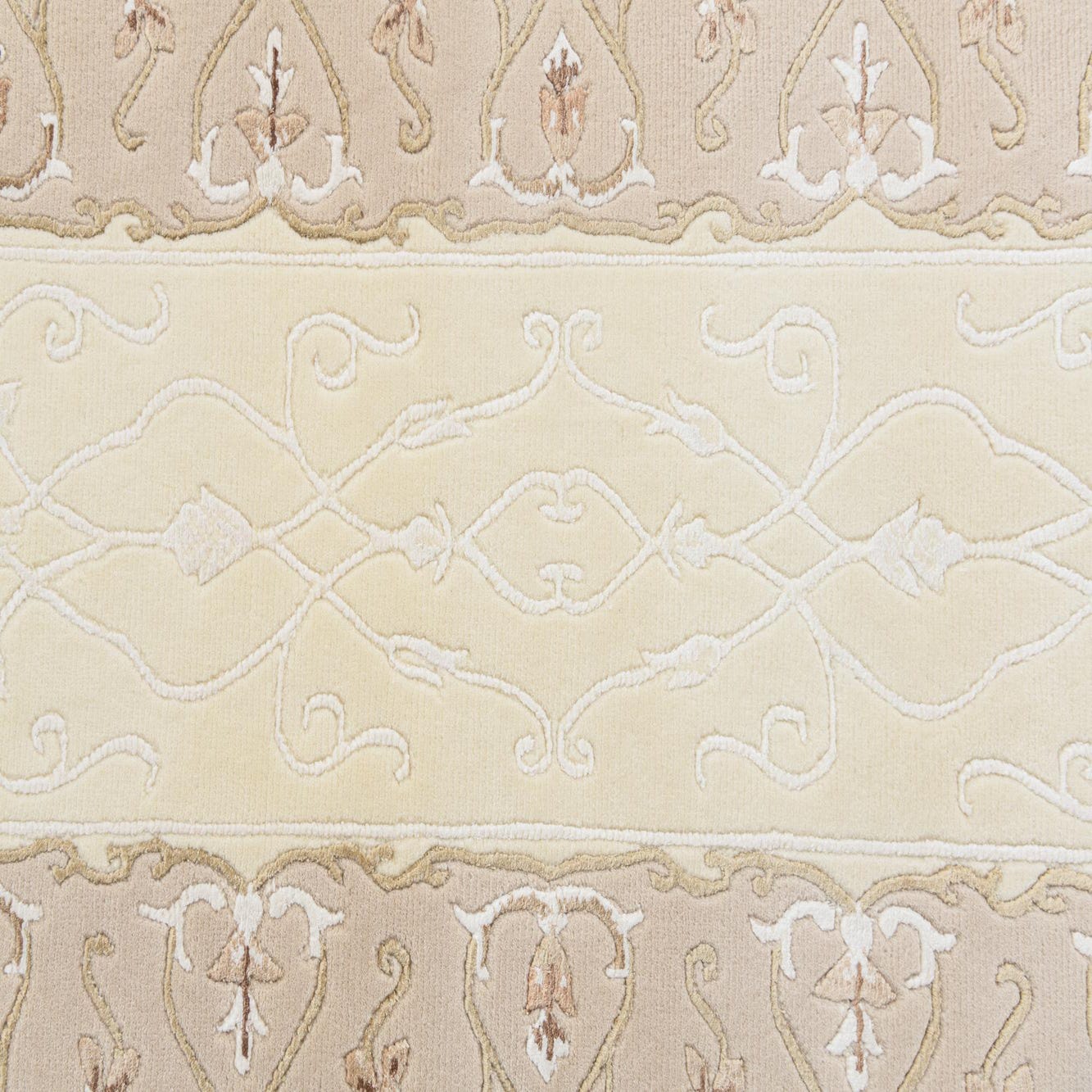 A 3x5 rectangular Darya rug with a cream center and a tan border featuring intricate brown and ivory floral patterns.