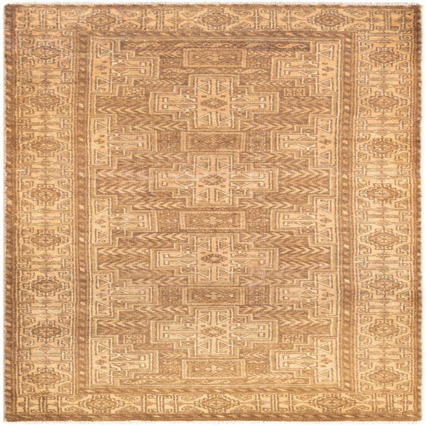A 3x5 rectangular Hamedan wool rug in shades of brown and tan, featuring a traditional tribal geometric pattern.