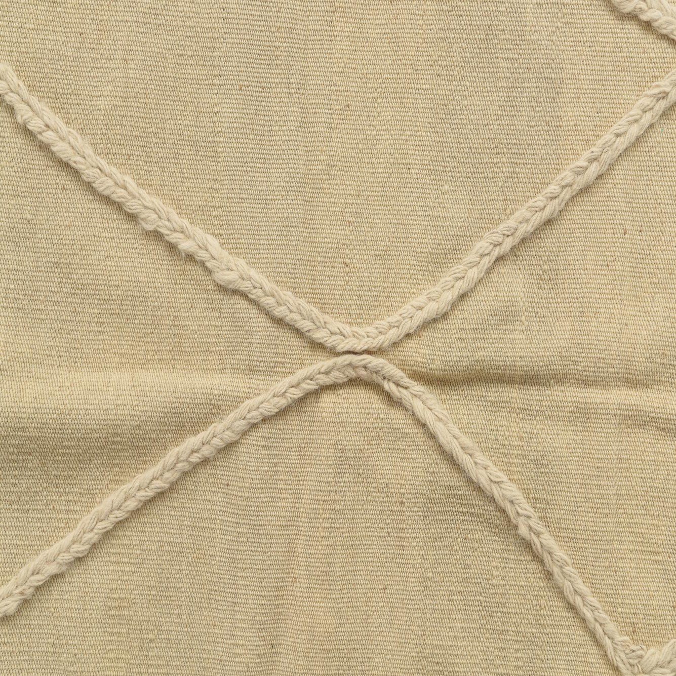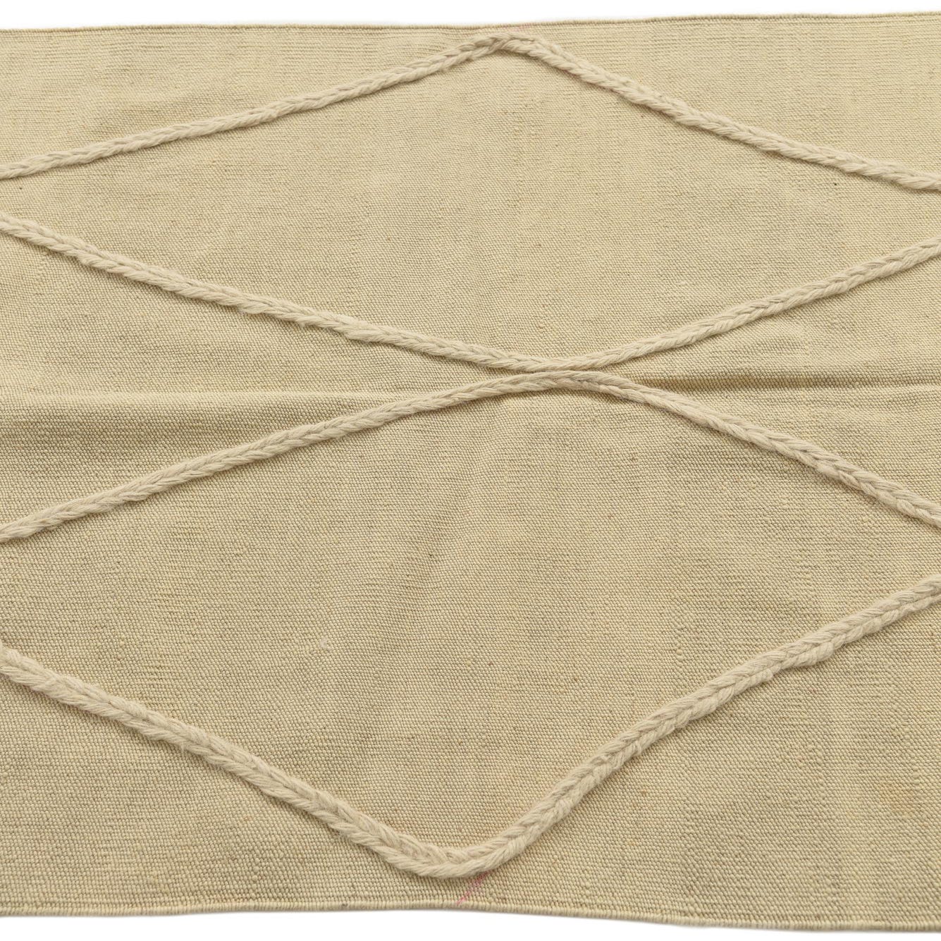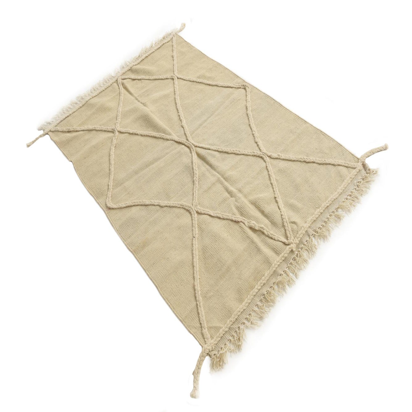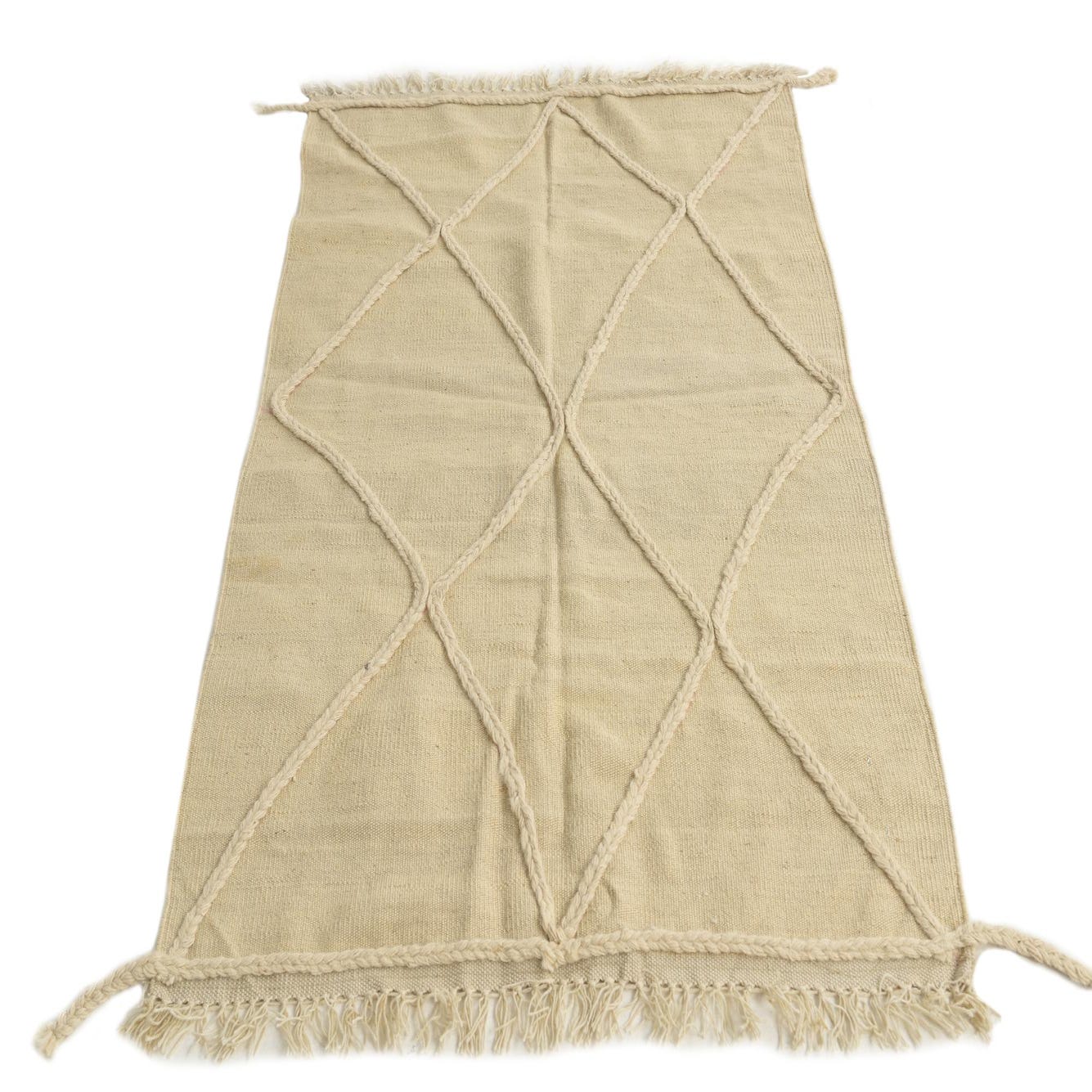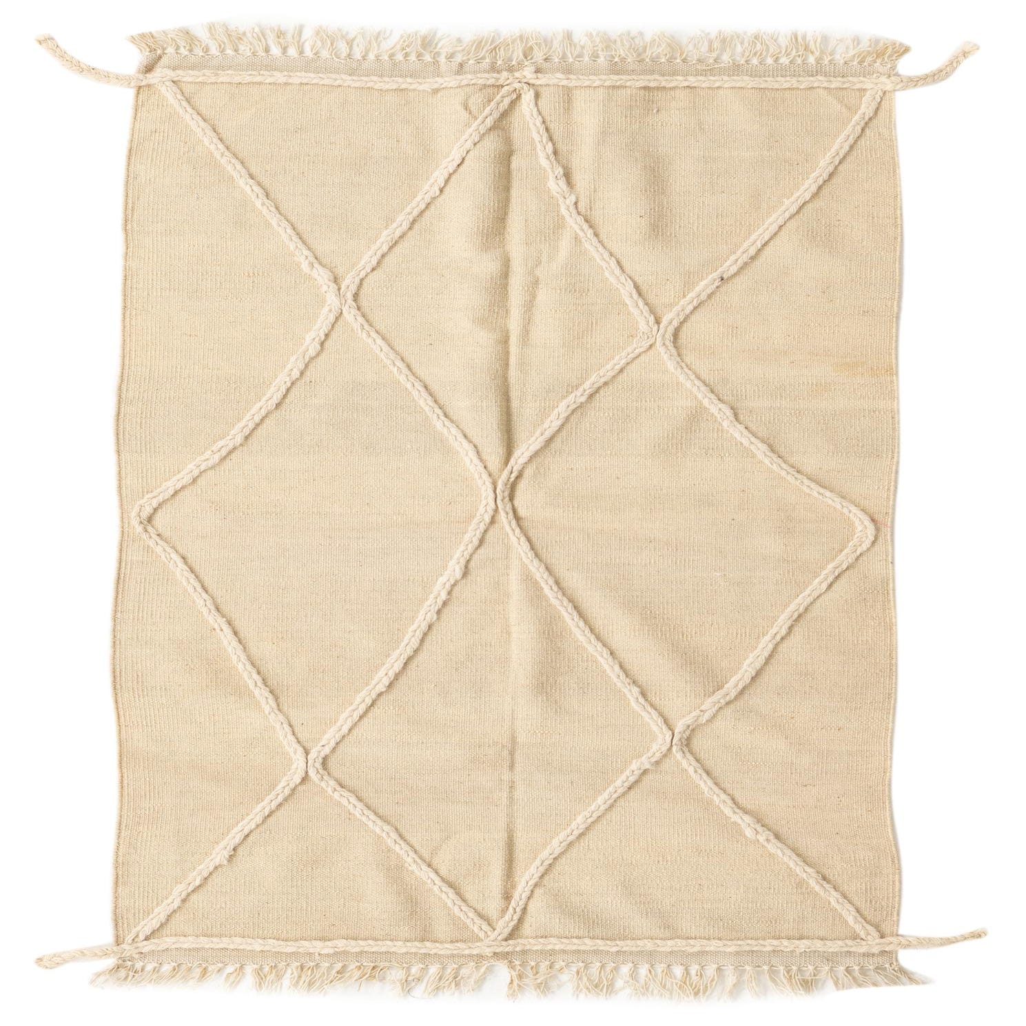 A 3x5 rectangular Rugs.com Moroccan tribal rug in natural ivory and tan wool with a shag pile and braided diamond pattern.
