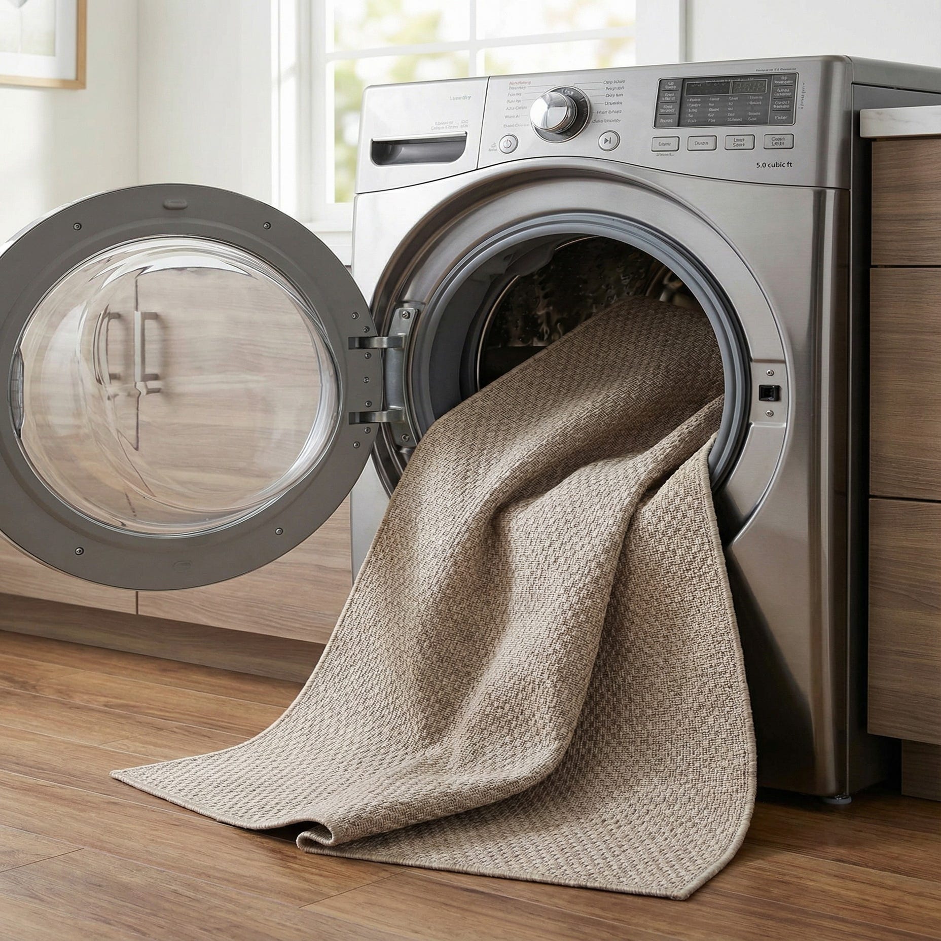This piece works well in covered outdoor spaces as well as indoor areas that see regular use. Place it beneath a bistro set on a porch, layer it in a sunroom with linen seating and greenery, or use it in an entryway or kitchen to ground neutral, coastal, or modern farmhouse interiors. Its beige backdrop pairs easily with natural woods, soft blues, and charcoal accents for a calm, collected look.