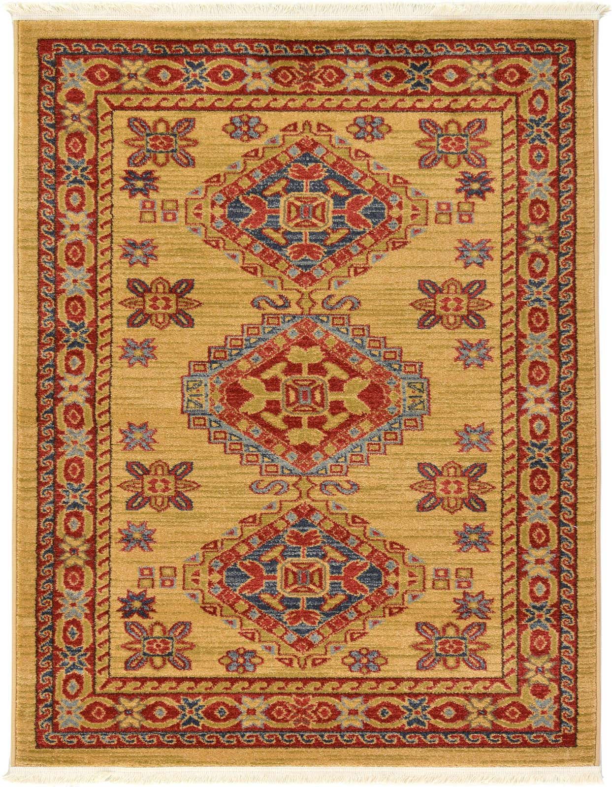 Primary color is Beige. Colors in this rug include: Beige, Red, Light Blue, Navy Blue, Light Green, Brown.