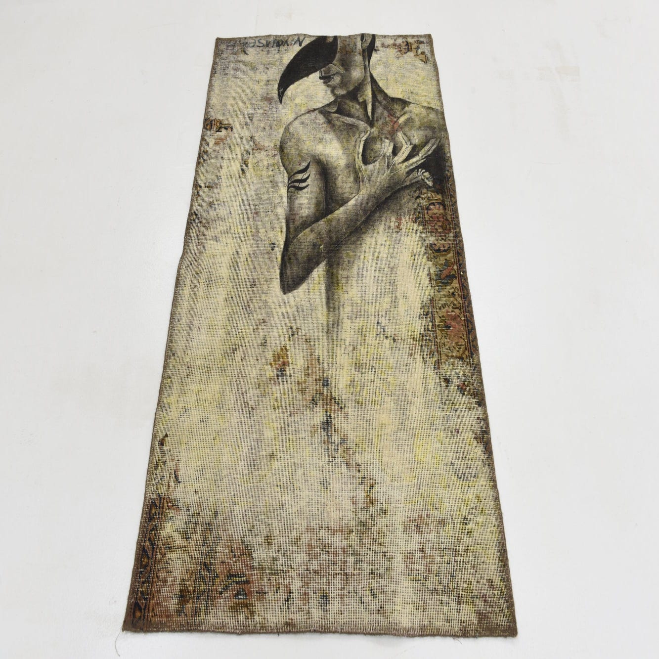Hand-knotted from 100% wool, the piece has a low-profile, tactile pile that feels soft underfoot with a slight, pleasantly nubby texture. The finish reads as gently weathered rather than uniform, making it an easy anchor for a variety of interiors. Place it in an entry or hallway to introduce warmth and visual interest; layer it beneath a reading chair or beside a bed to add texture without overwhelming the space; or use it in a small living area or studio to complement warm woods, leather seating and matte metal accents for a balanced, collected look.