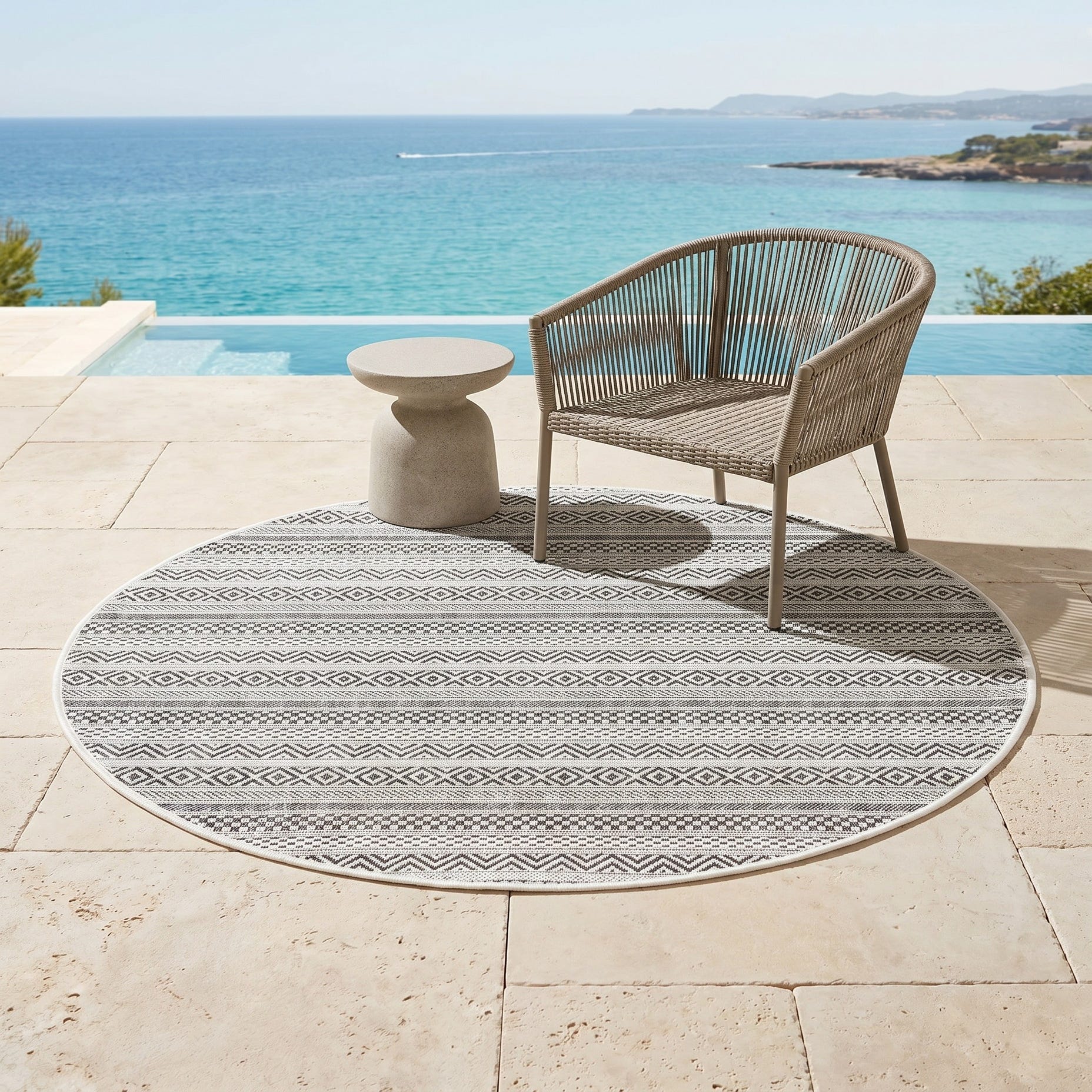 4' x 4' Easy-Clean Ribbon Indoor / Outdoor Round Rug