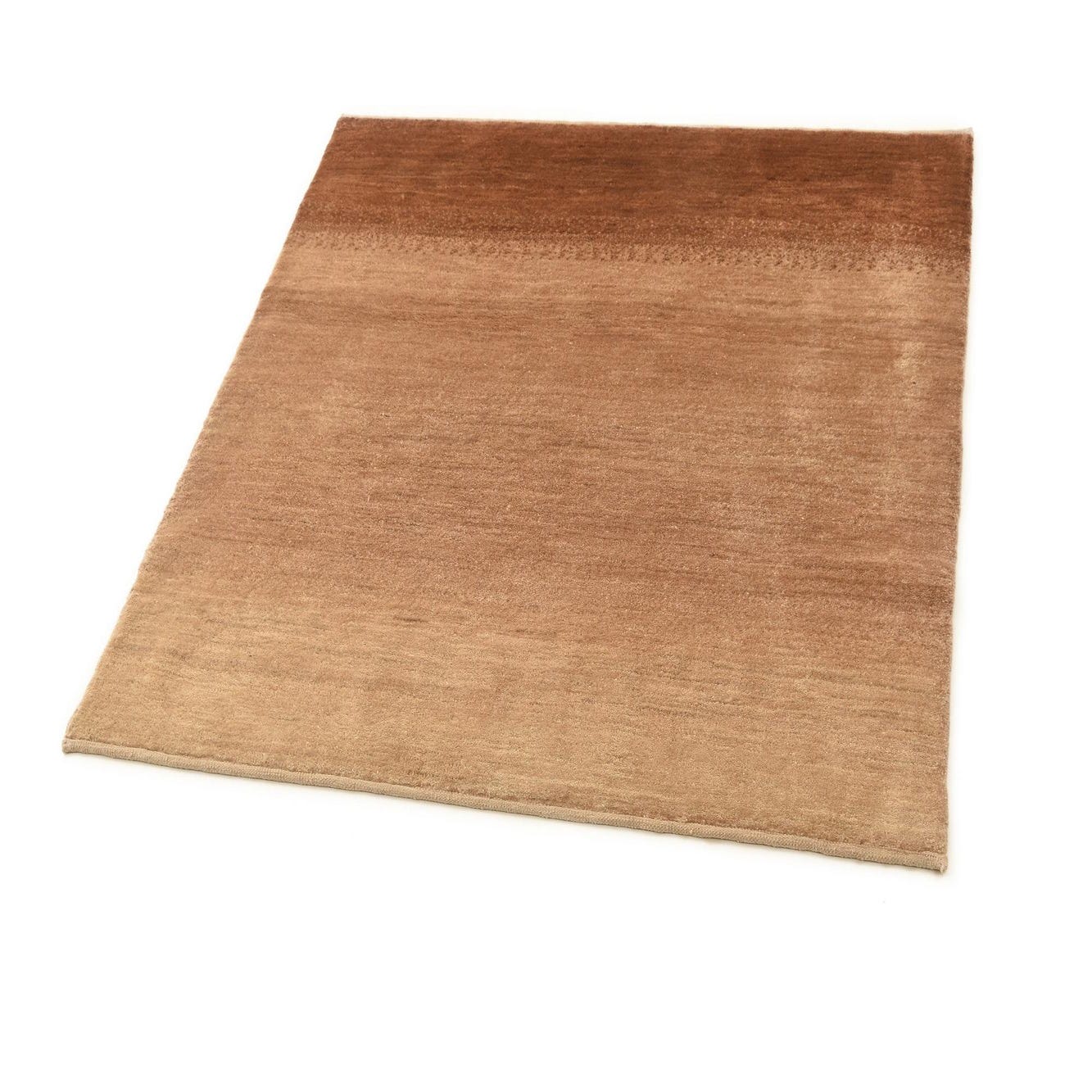 A square Gabbeh rug, 3' 9 x 3' 11, featuring a modern gradient design from light tan to dark brown, with subtle textured patterns.
