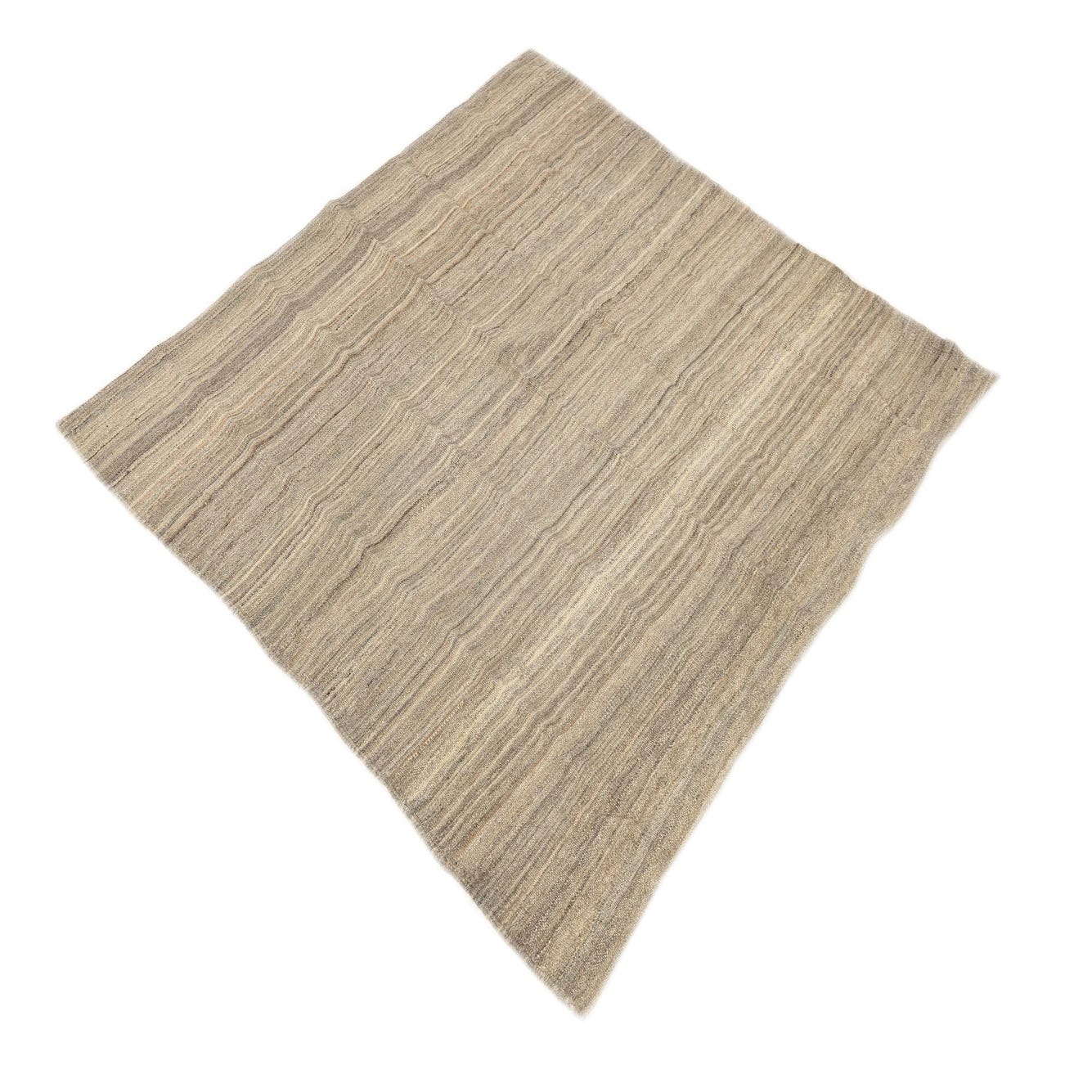The Kilim Modern collection presents a 4 Ft Square rug that is handwoven from 100% wool, offering a tactile experience with a sturdy, flatweave construction. This piece features a minimalist striped pattern that lends a contemporary look while maintaining a sense of timeless simplicity. The background color is a versatile beige, complemented by lines in a subtle array of neutral shades that can seamlessly integrate into a multitude of interior designs.