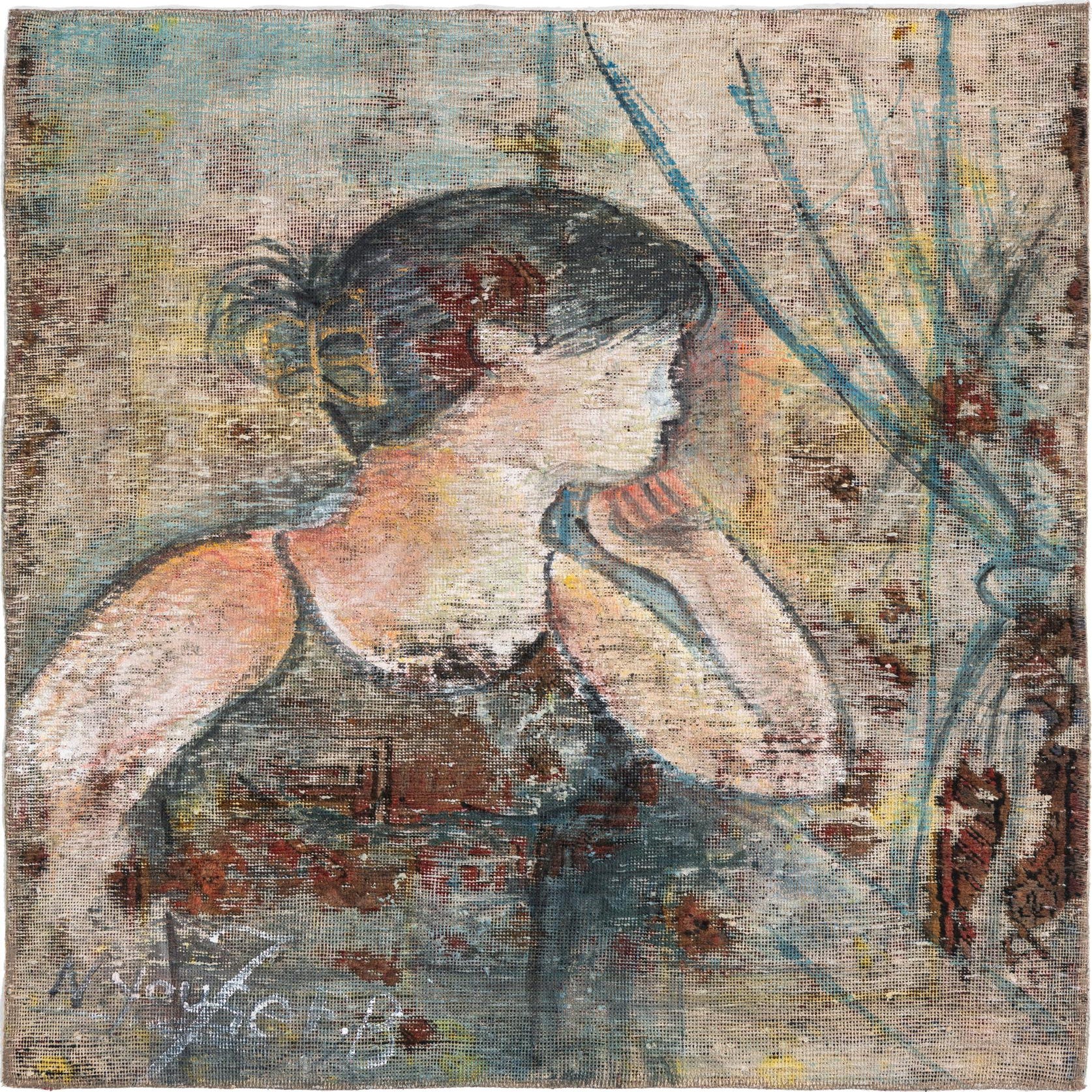 Detail image of  3' 5 x 4'  Hand Knotted Ultra Vintage Persian Wool Square Rug