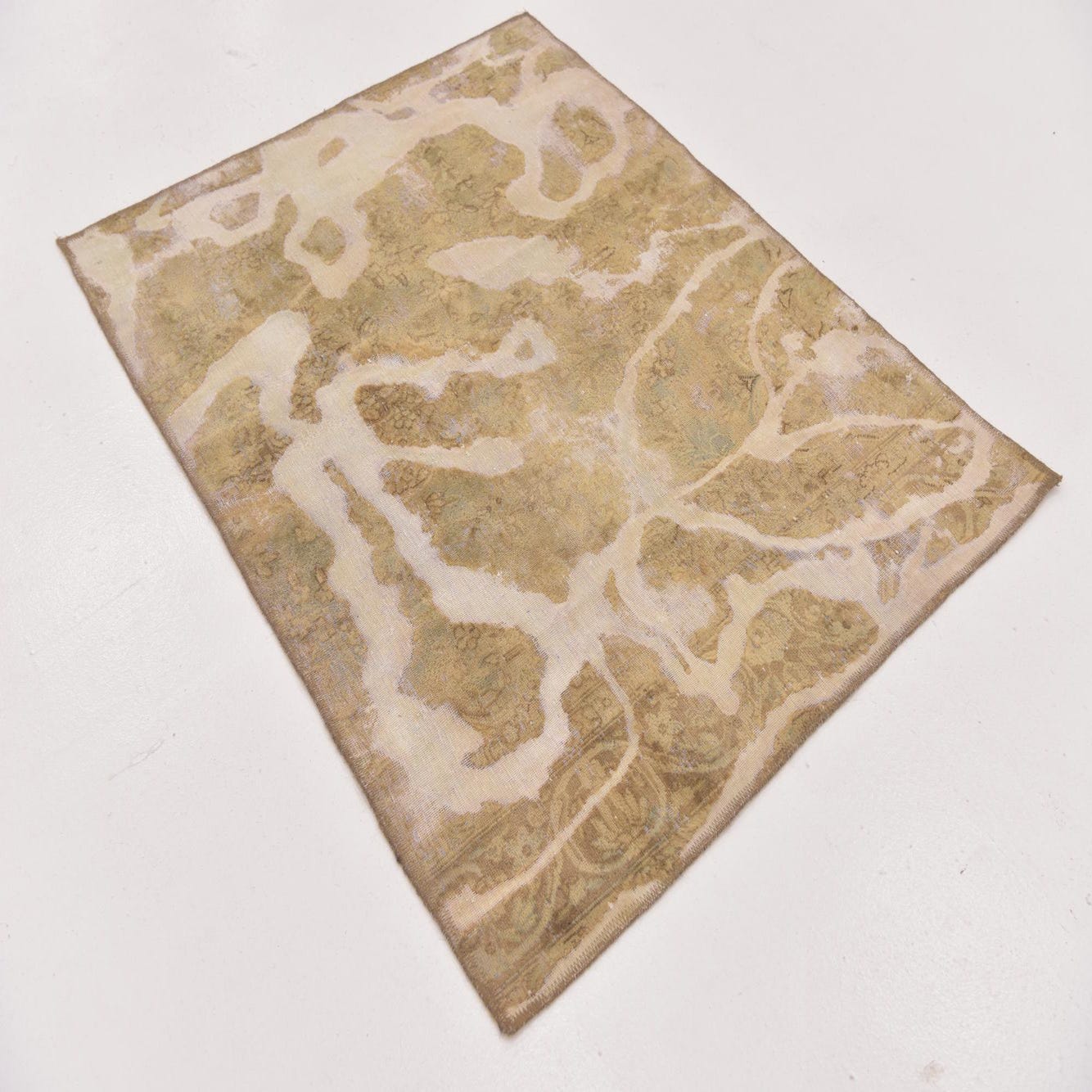 This Persian Ultra Vintage rug is an antique Persian Rug that has been washed, over-dyed, and then shaved down to a low pile. Look at the detail pictures to fully appreciate the uniqueness of this piece.
