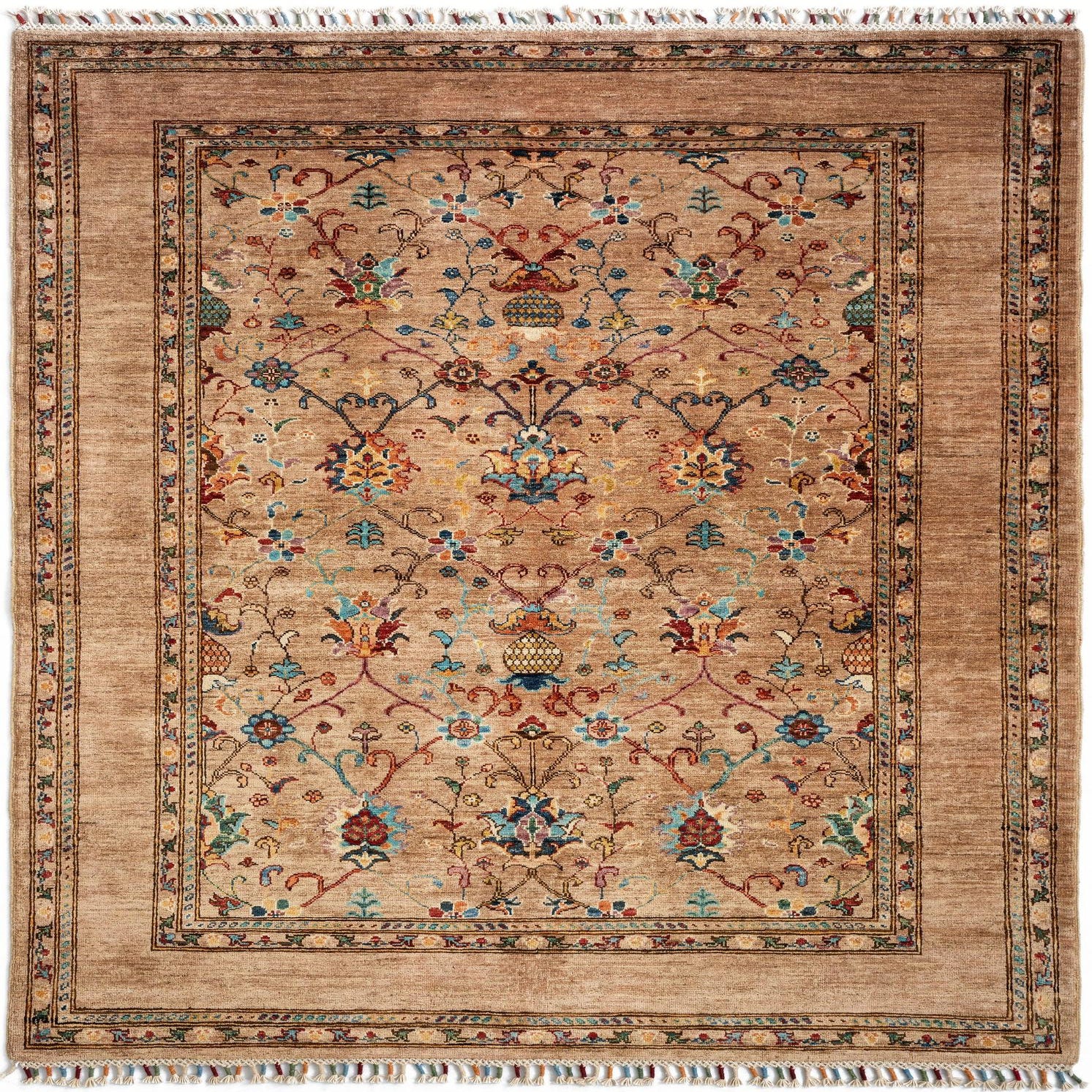 The balanced color palette and elegant design make this rug versatile enough to complement a range of interior settings. Its traditional elements would harmonize with classic and vintage decor, providing a warm and inviting foundation in a living room or study. Similarly, the rug's refined aesthetic might serve as a counterpoint in a more contemporary space, adding a touch of ornate contrast to minimalist or modern interiors.