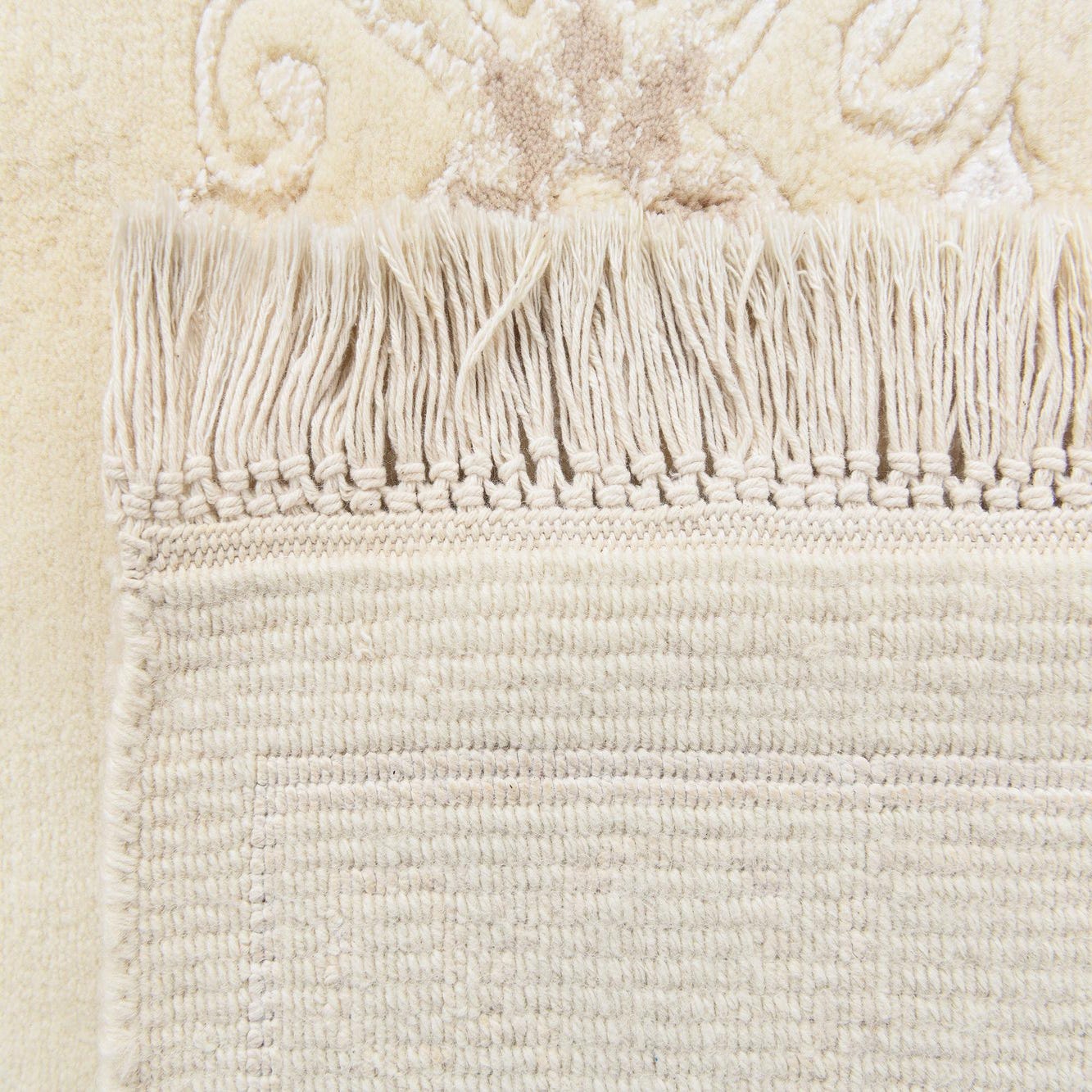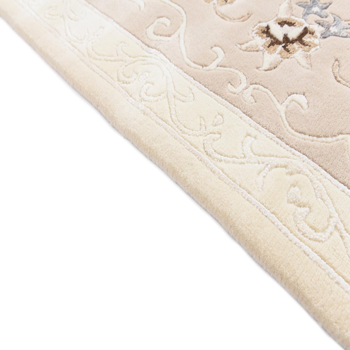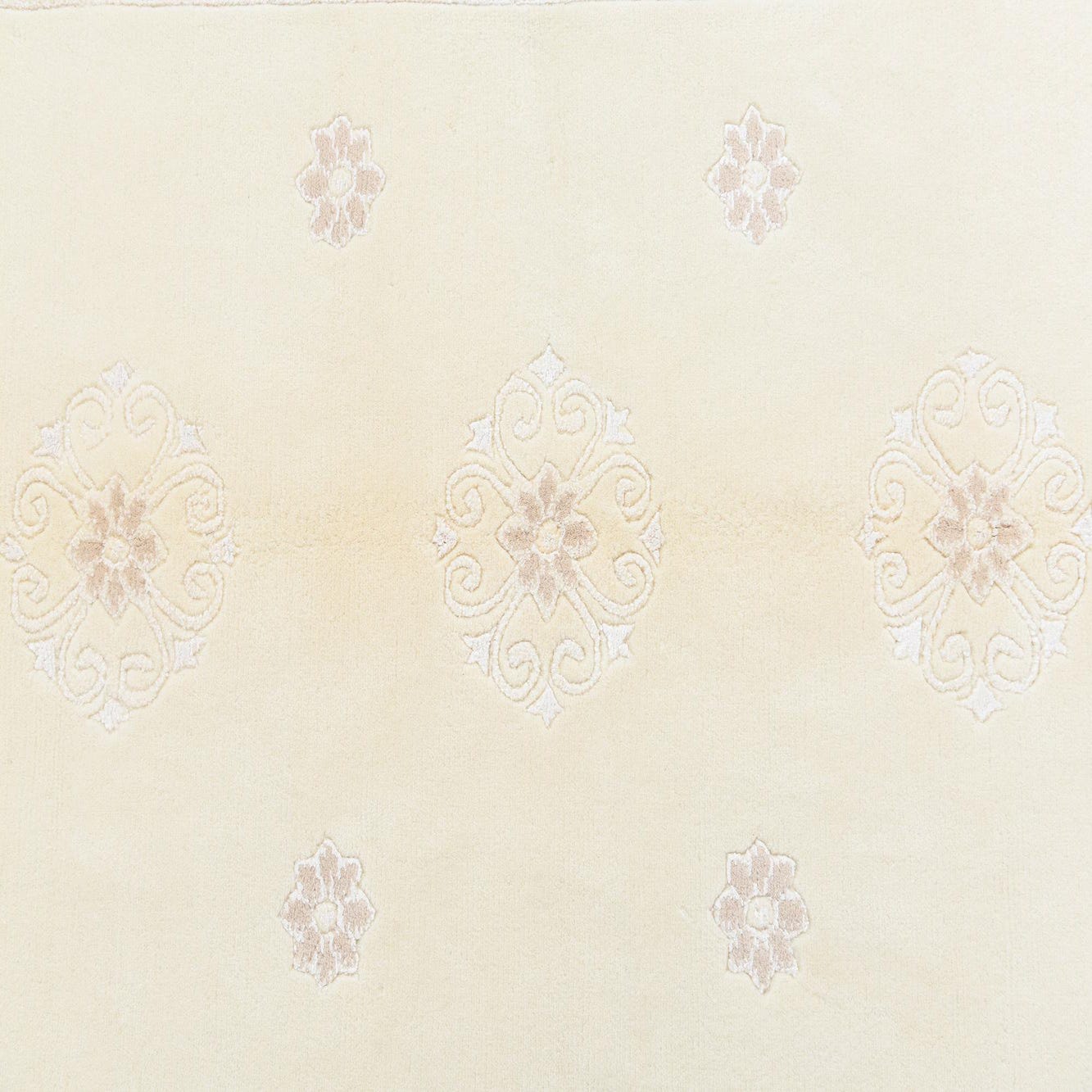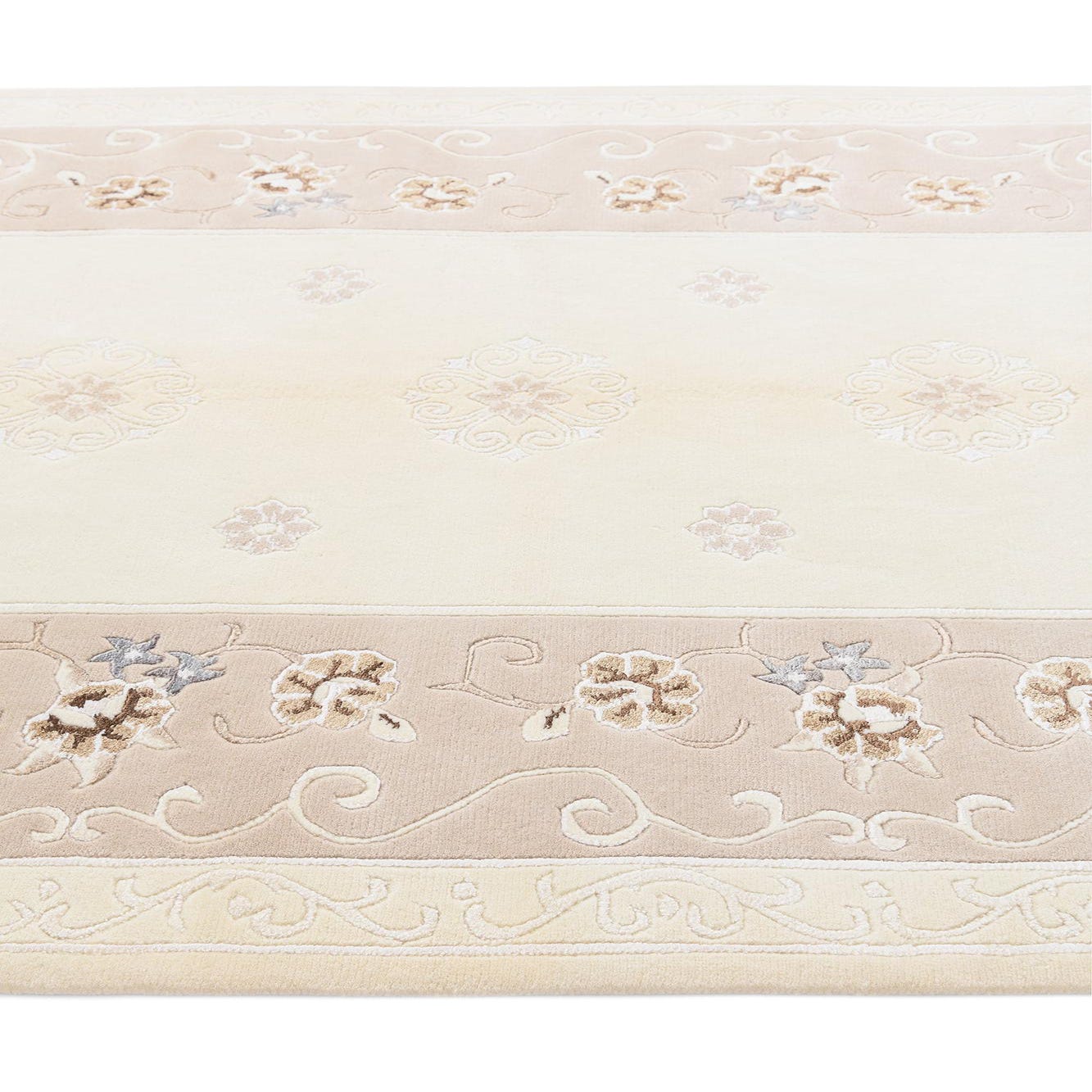 This rug's neutral color palette and refined pattern make it a versatile piece that can easily integrate into various decor styles. It would be a tasteful selection for a traditional living room under a coffee table, offering a classic charm. Alternatively, it could serve as a grounding element in a minimalist bedroom, adding warmth without overwhelming the decor. The subtle floral details lend themselves well to a romantic or country-style dining room, enhancing the space's natural elegance.