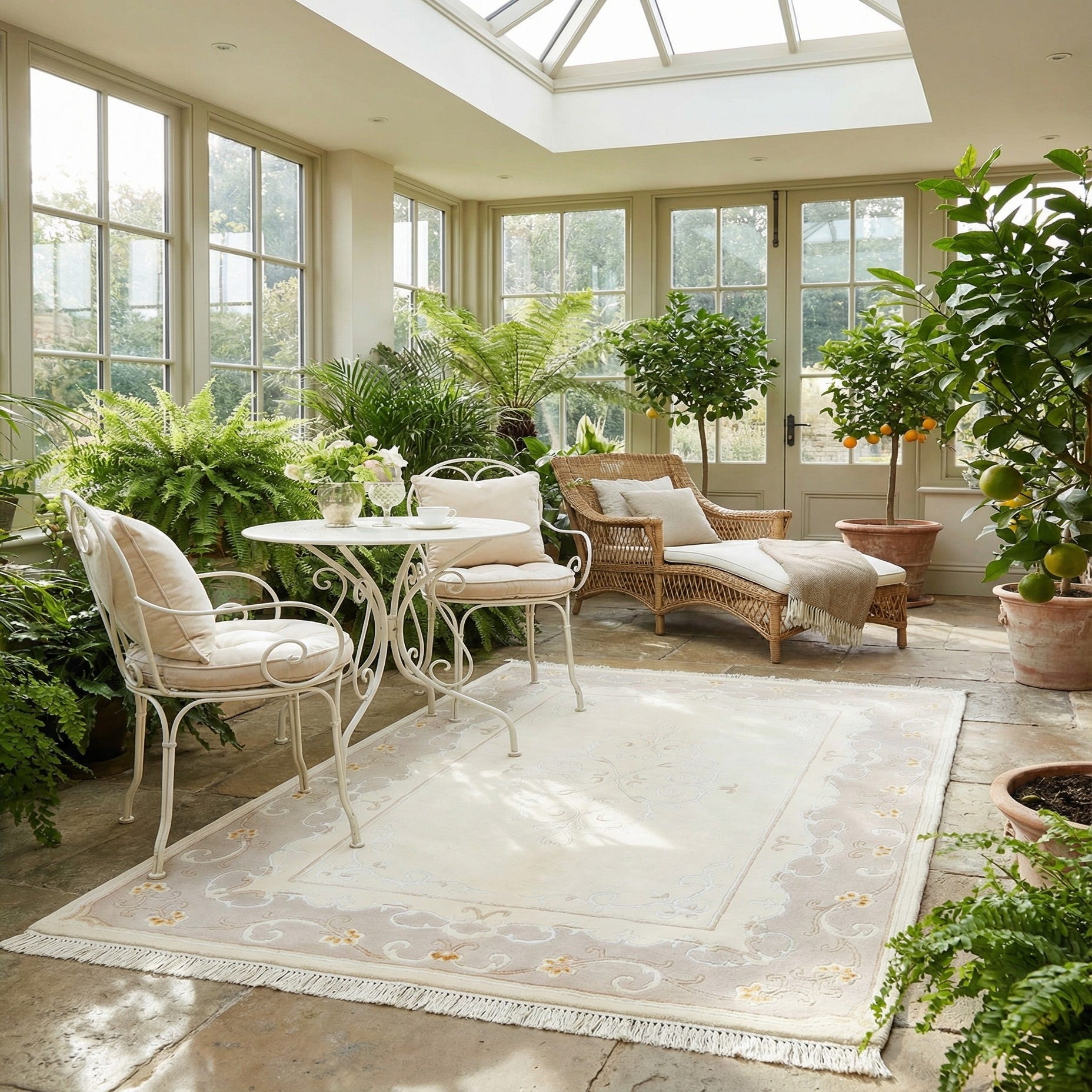 Ideal for a variety of interior design scenarios, this rug would sit beautifully in a classic, traditional setting, or as a contrasting piece in a more modern, minimalist decor. It could also serve as a refined anchor in a living room, underpinning a seating area with its subtle hues and intricate patterns, or be a cozy enhancement to a bedroom where a gentle elegance is desired.