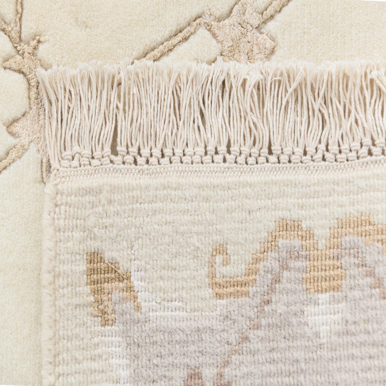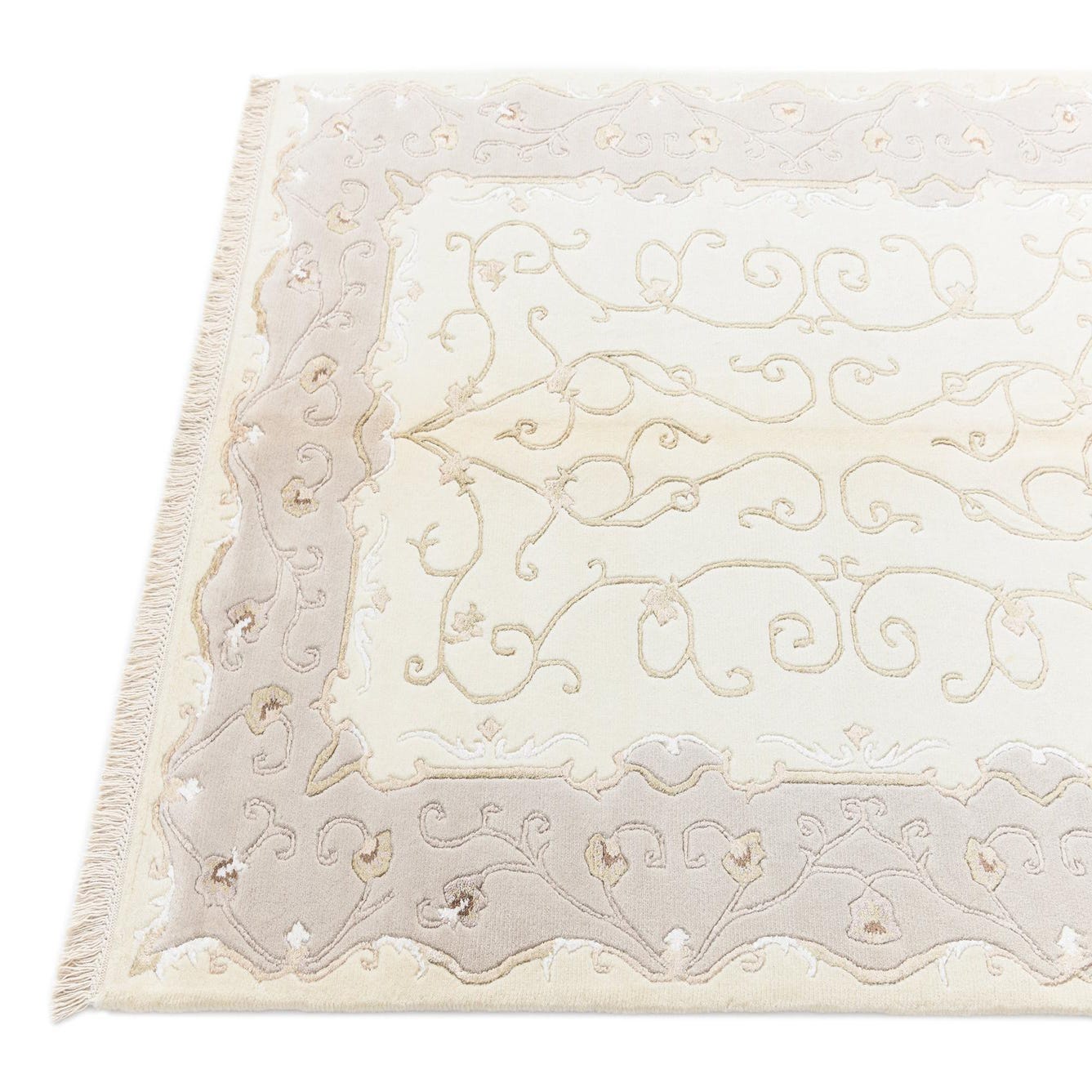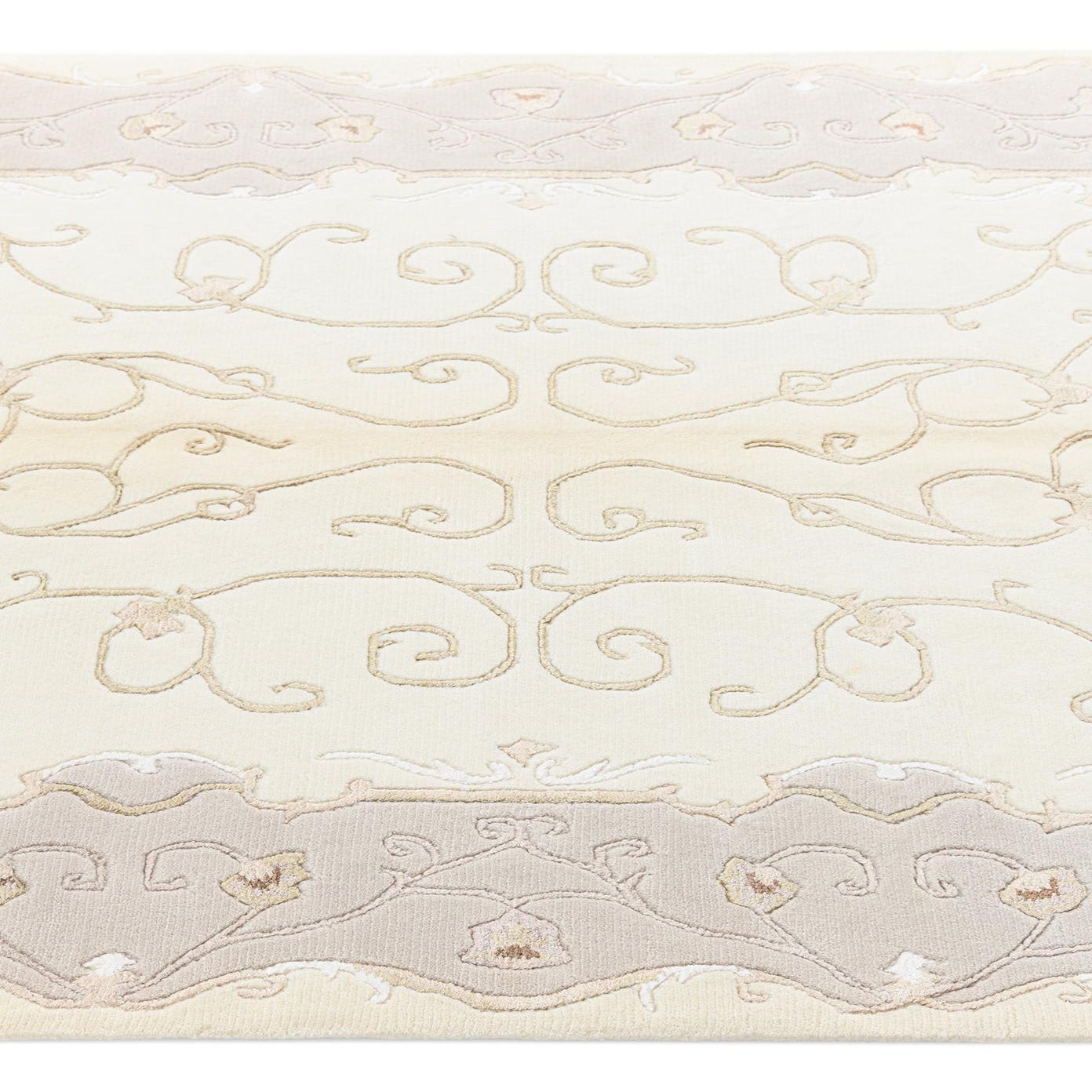 This rug's timeless design and neutral color palette make it an ideal choice for interiors aiming for a classic, transitional, or even contemporary look. It can complement a variety of decors, from minimalist and modern to more ornate and traditional settings, such as living rooms, home offices, or bedrooms. The rug's dimension suits small to medium-sized spaces, serving as a focal point or as an elegant complement to existing furnishings.