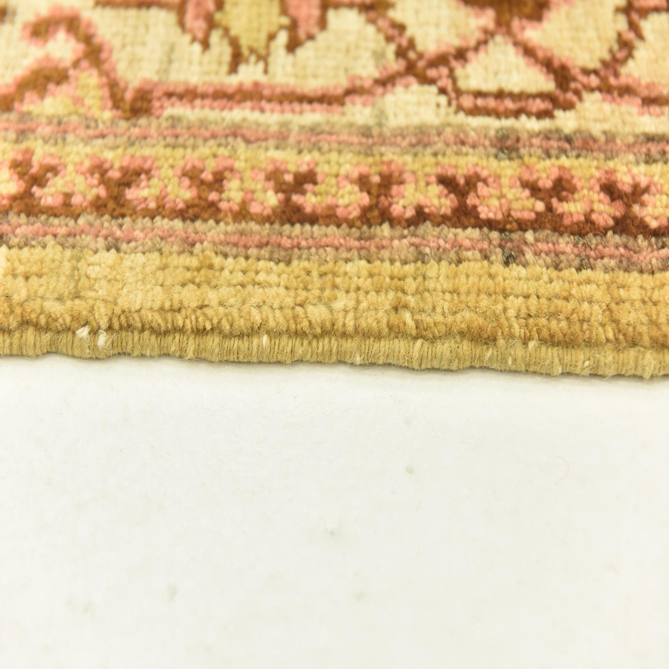 This rug features an intricate fringe detail that adds to its classic charm. The soft color palette and pattern lend it the versatility to integrate seamlessly into various interior design themes, ranging from traditional spaces to more eclectic and transitional environments. This rug would be well-suited for settings aiming to evoke a sense of warmth and understated elegance, such as a living room, study, or bedroom where its refined aesthetic and comforting texture can be fully appreciated.