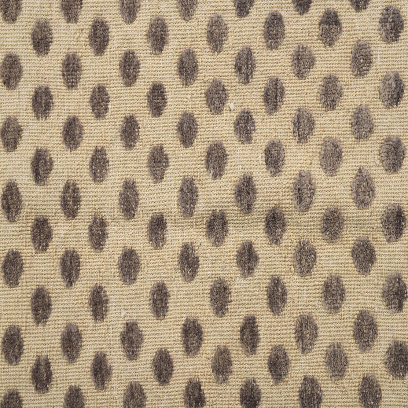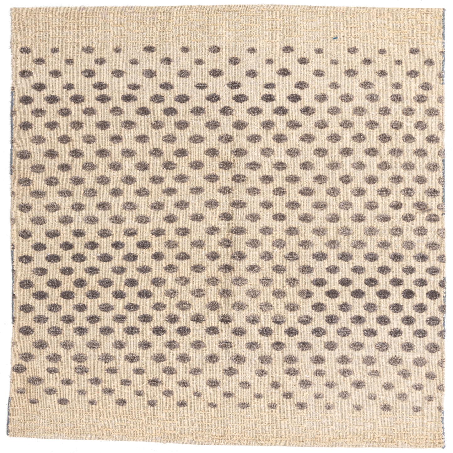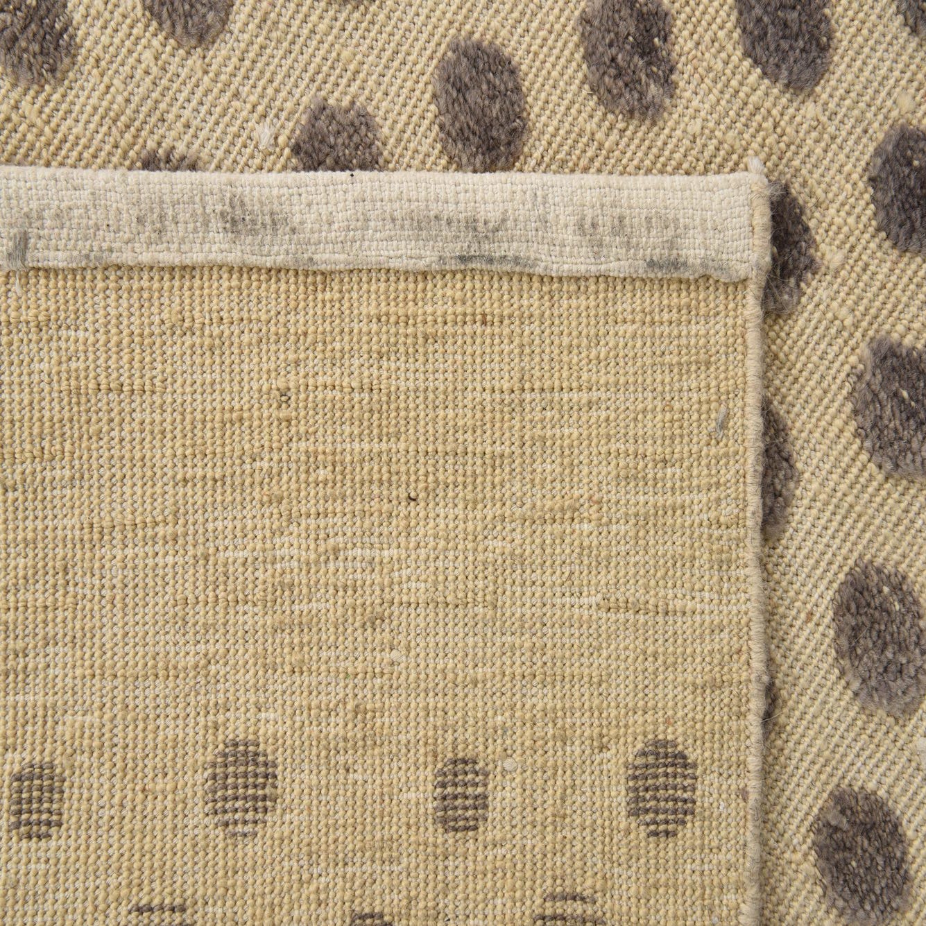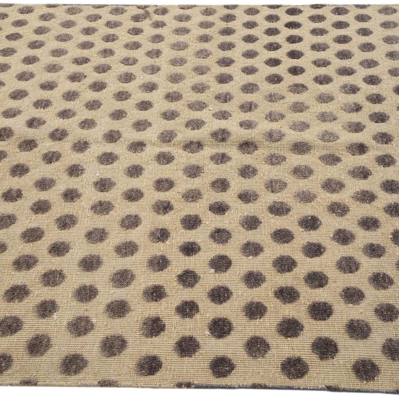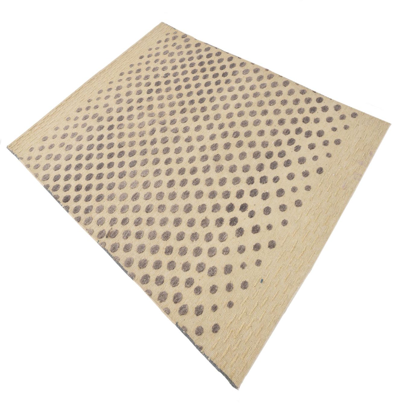 A 4x6 rectangular Darya rug with a modern polka dot pattern in varying shades of brown on a cream background, featuring a textured wool pile.