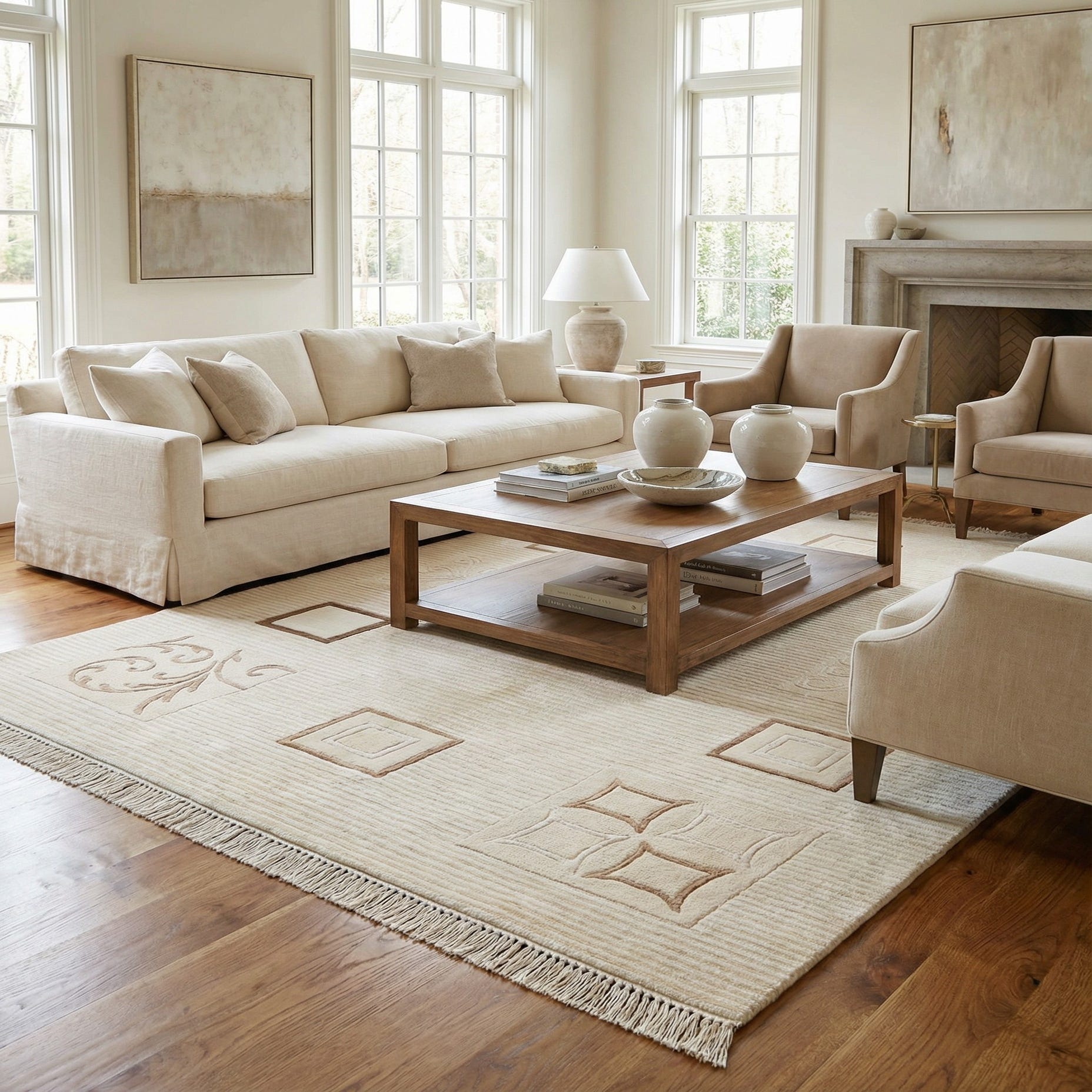 Primary color is Beige. Colors in this rug include: Beige, Brown, Cream, Light Brown.