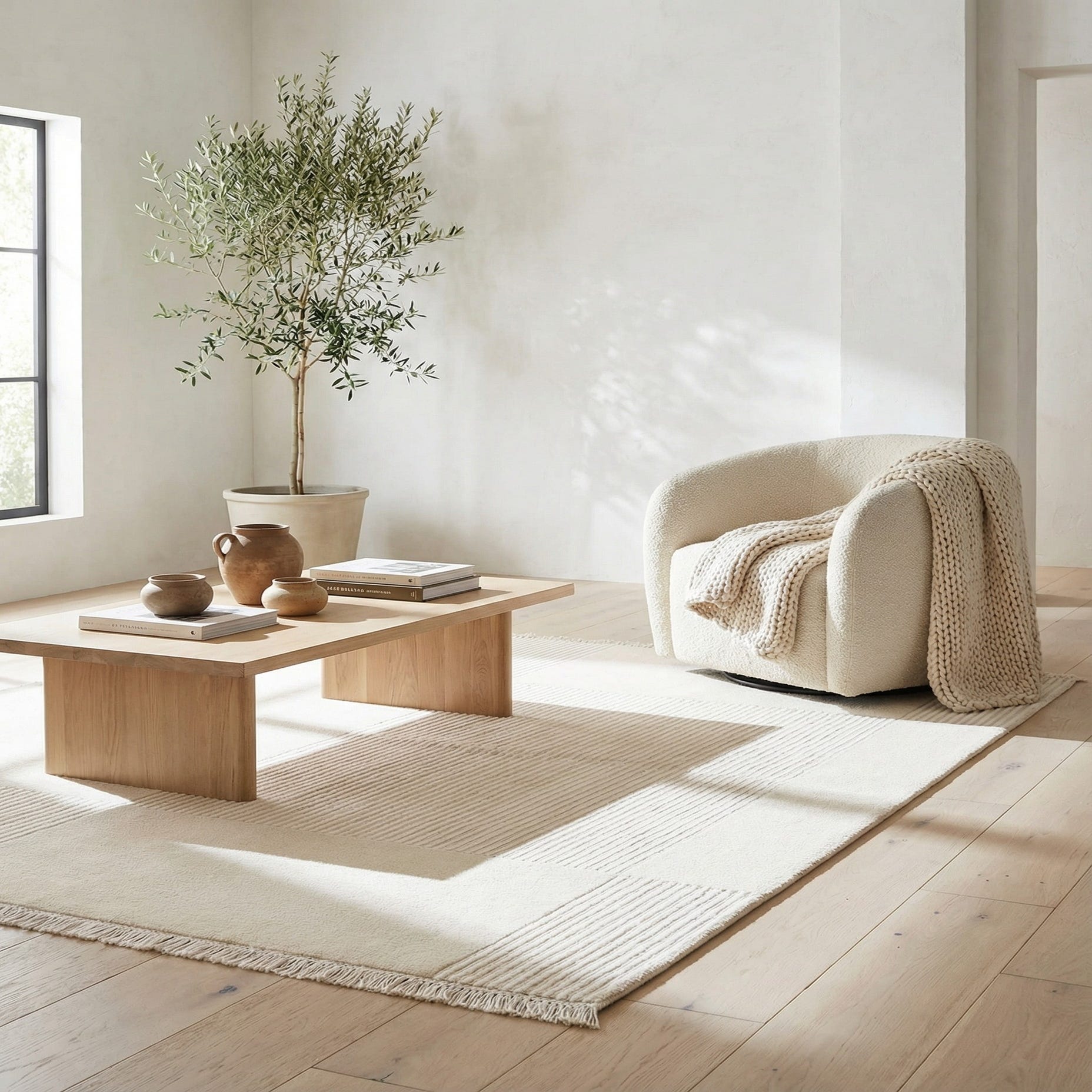 This rug would be an ideal addition to interiors that favor understated elegance. It can serve as a calming foundation in a contemporary setting, support the clean lines of a modern minimalist space, or complement the soft hues of a coastal-themed room. Its versatility allows it to either stand out as a subtle centerpiece or blend seamlessly with existing furnishings and color schemes.