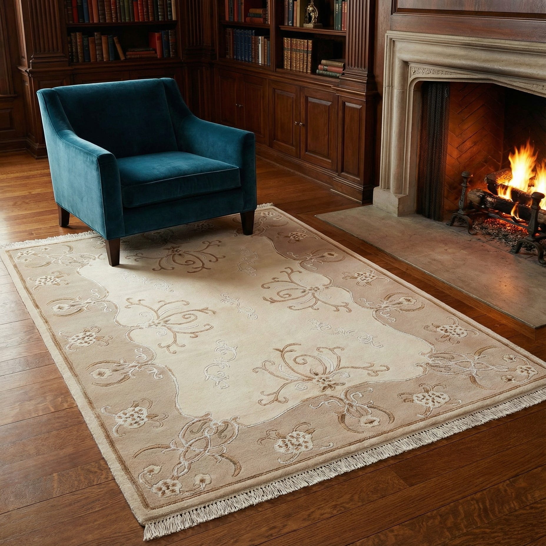 Primary color is Beige. Colors in this rug include: Beige, Brown, Ivory, Light Brown, Tan.