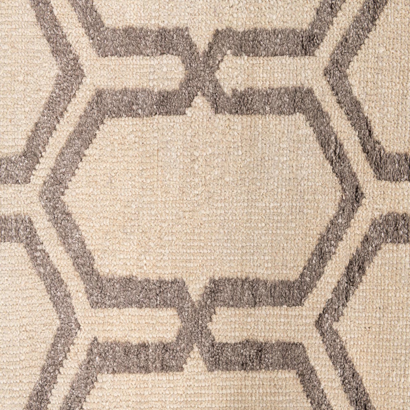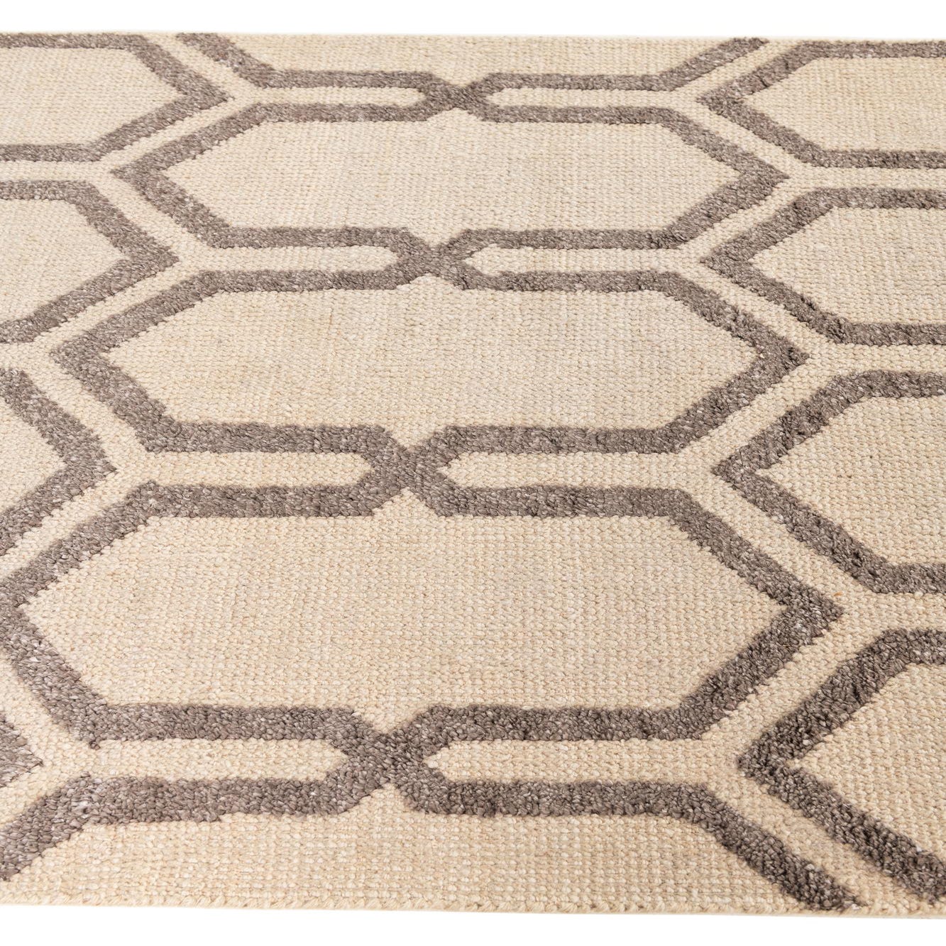A rectangular 4x6 Darya rug featuring a modern geometric pattern of interlocking brown hexagons on an ivory background.