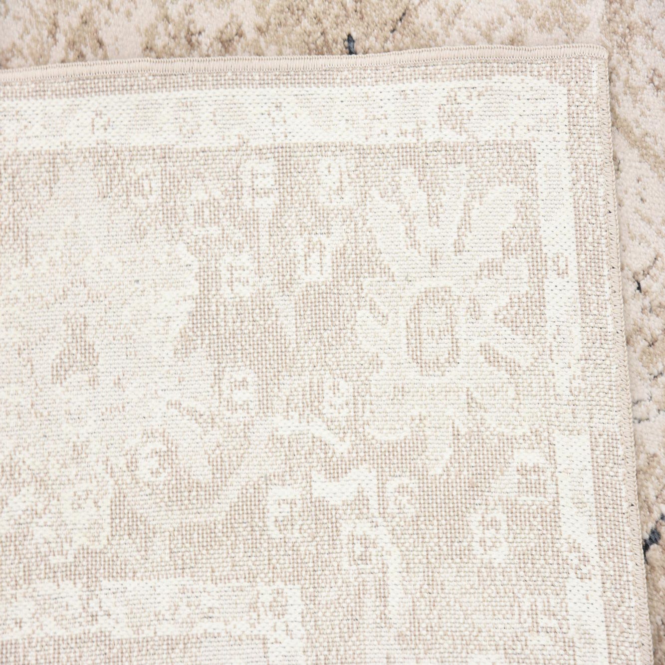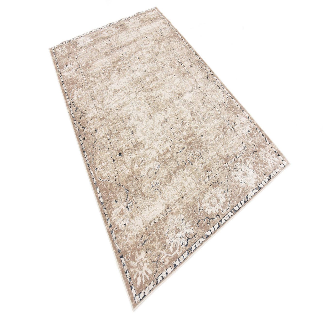 Primary color is Beige. Colors in this rug include: Beige, Blue, Brown, Gray, Ivory.