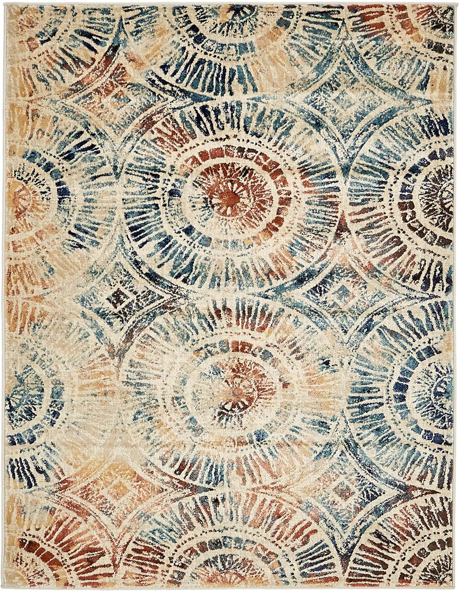 Primary color is Beige. Colors in this rug include: Beige, Navy Blue, Brown, Blue.
