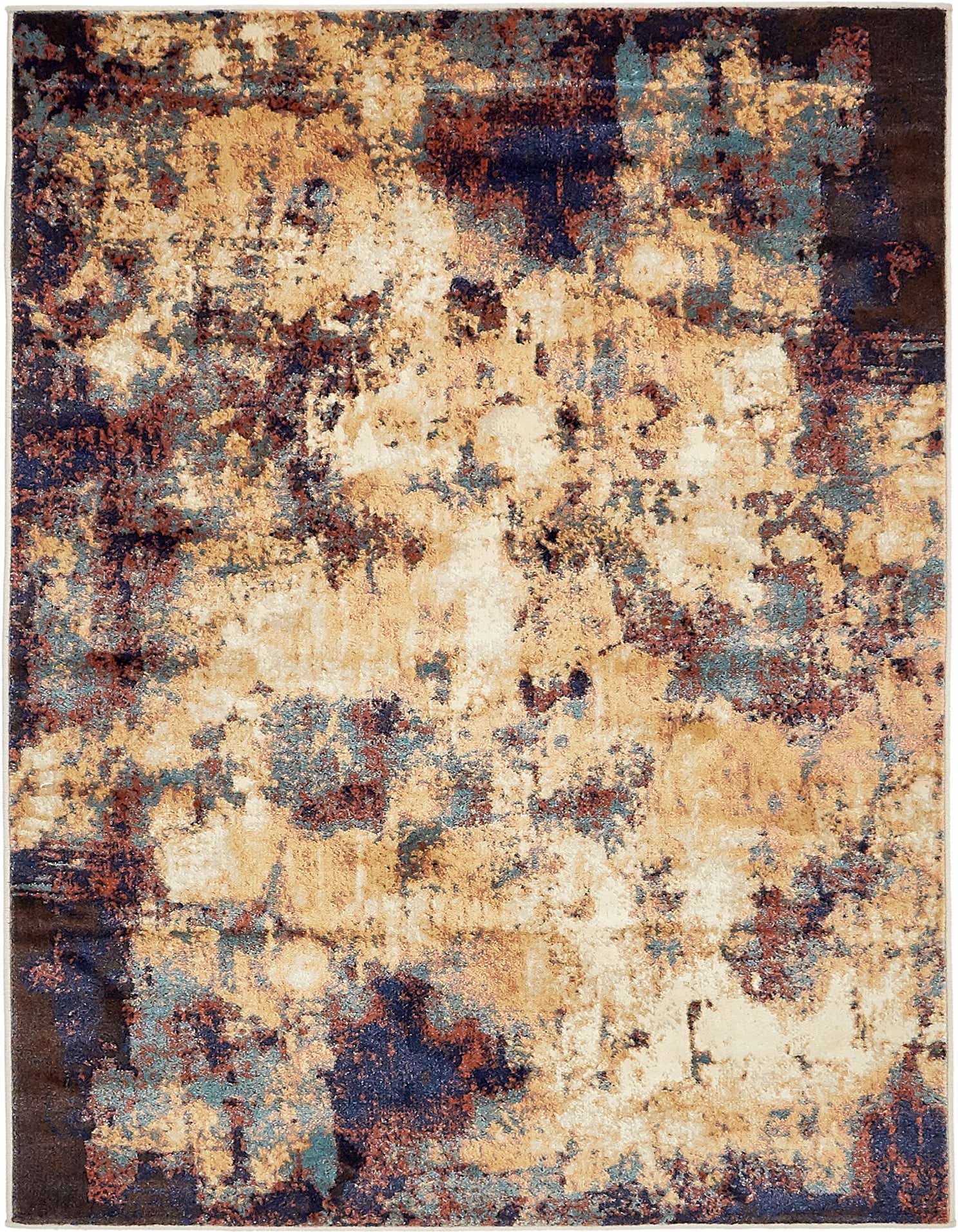 Primary color is Beige. Colors in this rug include: Beige, Blue, Purple, Rust Red, Tan.