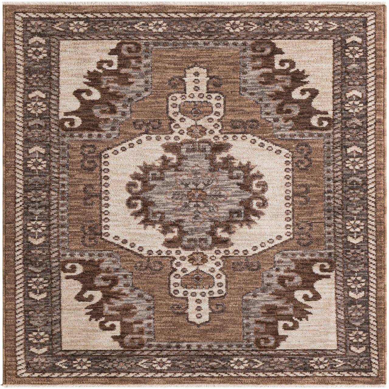 Primary color is Beige. Colors in this rug include: Beige, Brown, Gray, Ivory.