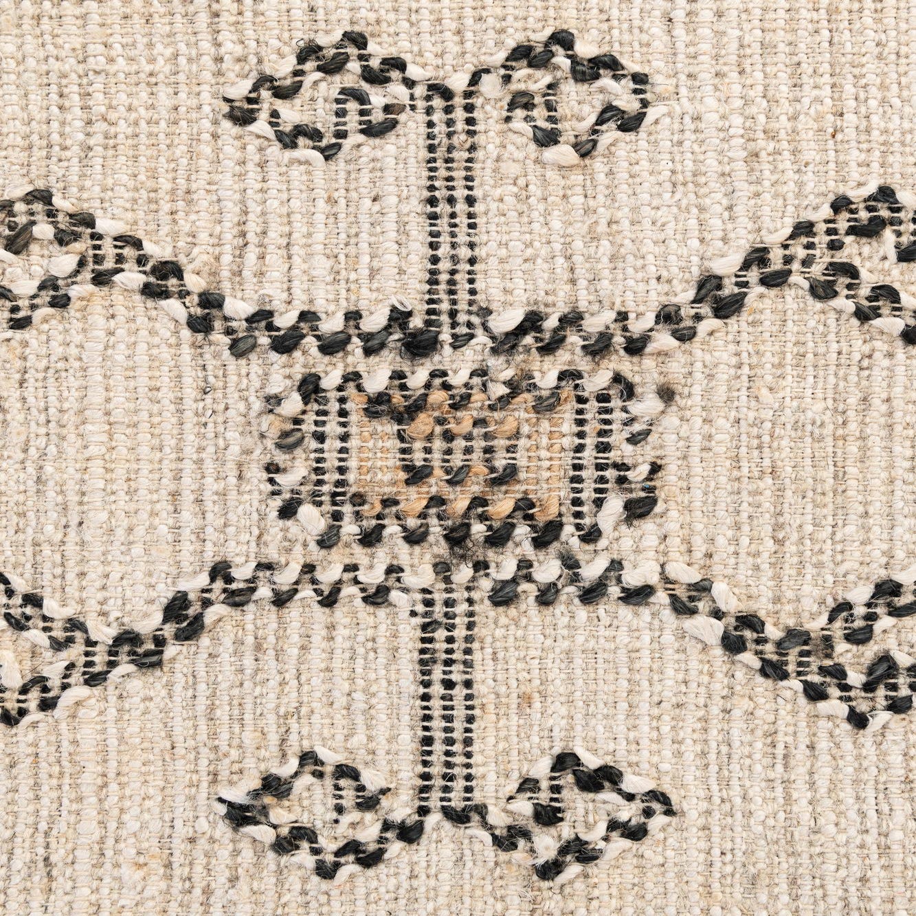 Primary color is Beige. Colors in this rug include: Beige, Black, Ivory.