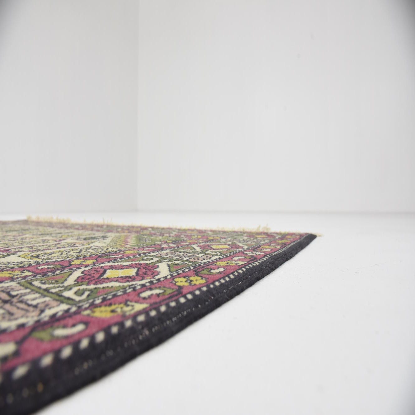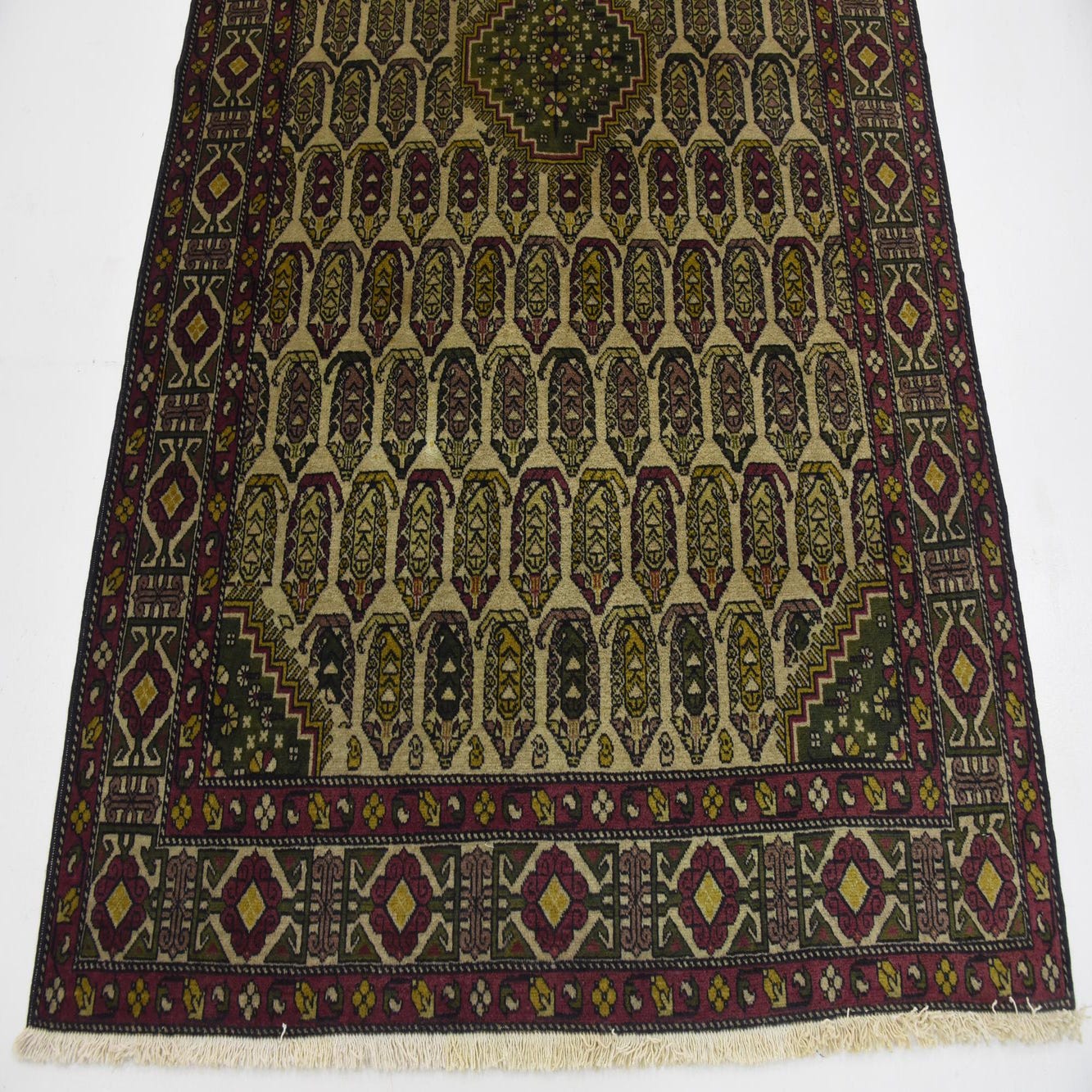 Use this rug to add layered color and pattern to a living room seating area, place it in an entry or study to introduce a traditional, global-inspired sensibility, or position it beside a bed to bring warmth to hardwood floors. It pairs well with mid- to dark-stained wood, leather seating, and textiles in deep green or plum tones; it also complements pared-back neutrals when you want the rug to be the main source of color. The hand-knotted wool build supports everyday use while maintaining an authentic woven character that suits both classic and transitional interiors.