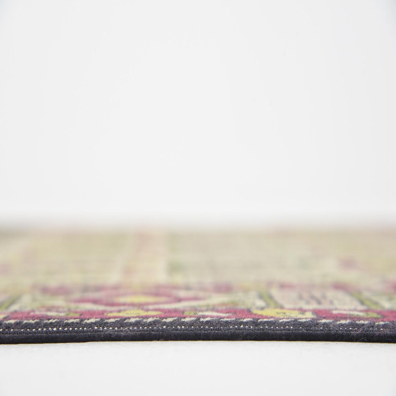 Primary color is Beige. Colors in this rug include: Beige, Green, Light Green, Plum Red, Puce, Purple, Black, Olive.