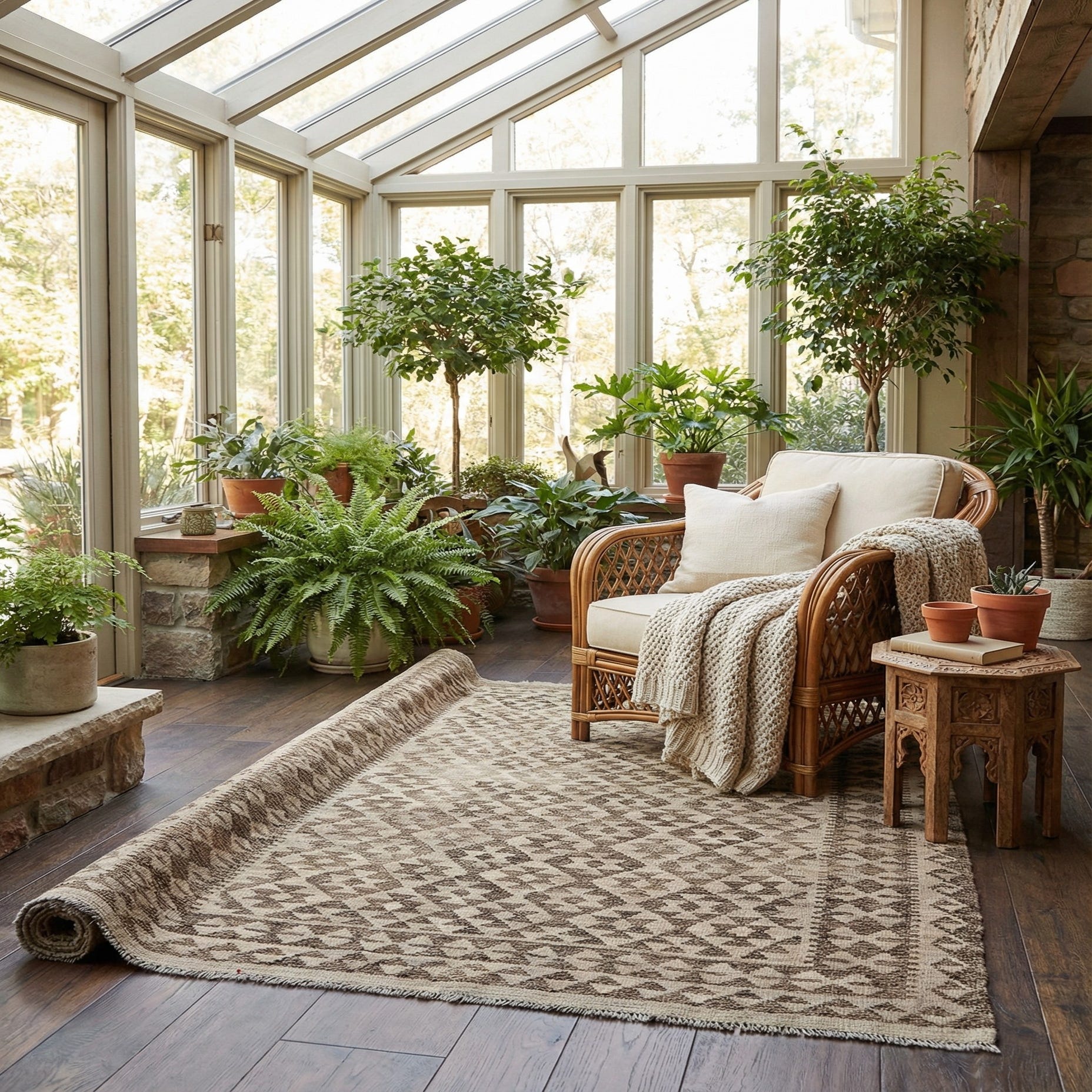 4' 2 x 6' 5 Hand Woven Kilim Maymana Wool Rug
