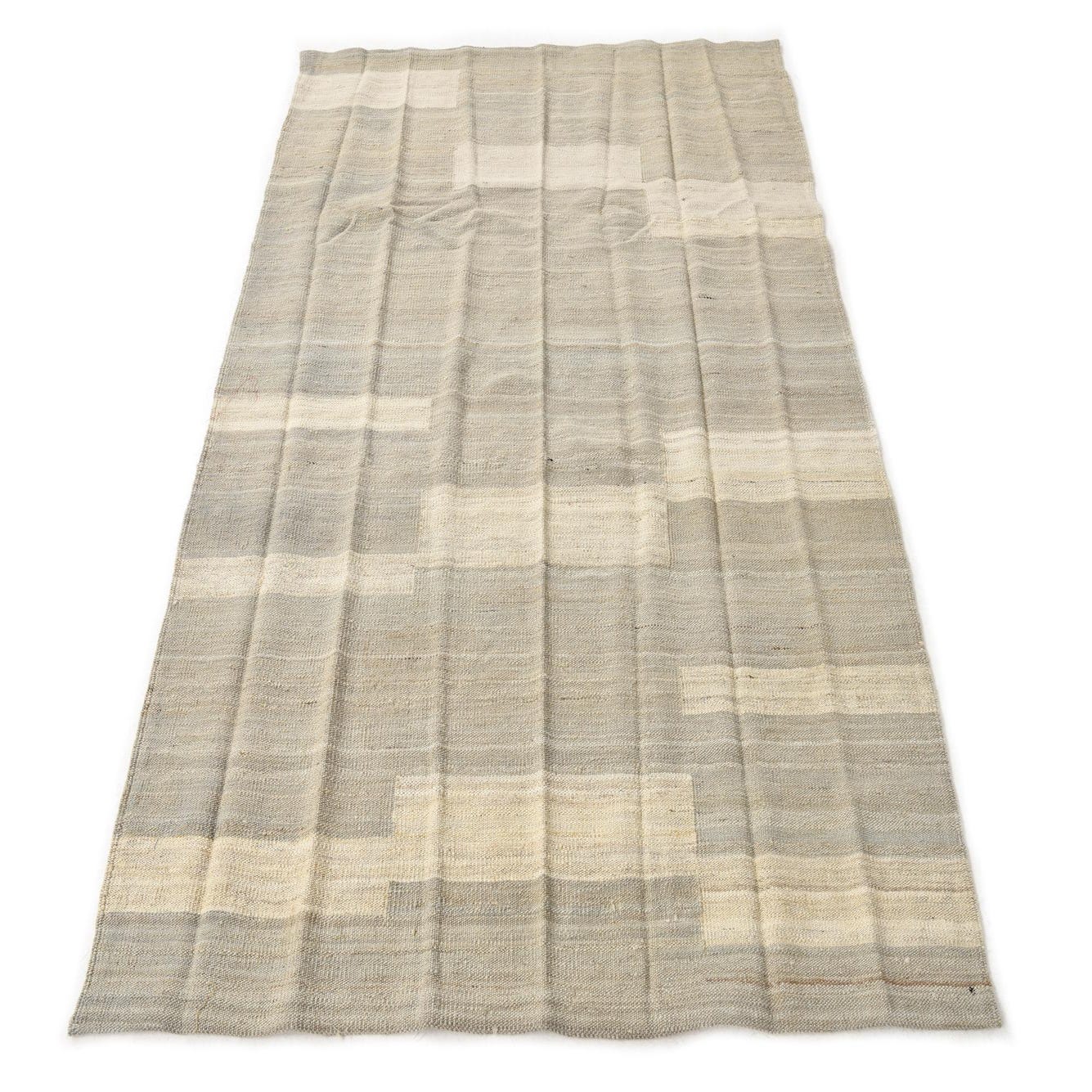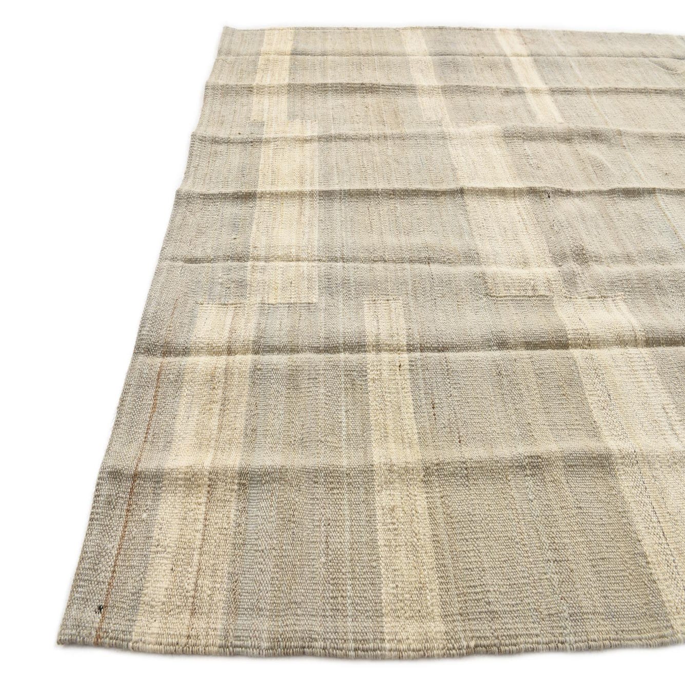 The Kilim Modern collection presents a sophisticated 4x6 hand-woven rug crafted from 100% wool, offering a harmonious blend of beige and ivory colors. It showcases an understated checkered pattern that provides a sense of texture and dimension without overwhelming the space it occupies. The weave itself adds to the visual interest, giving the rug a beautiful tactile quality.