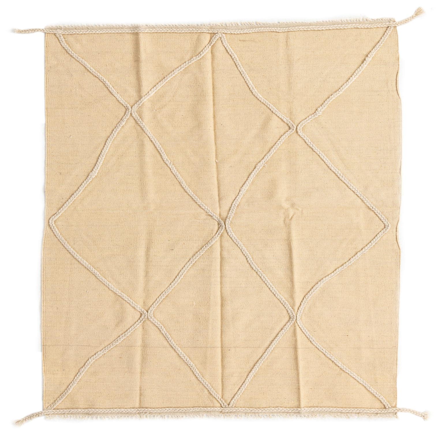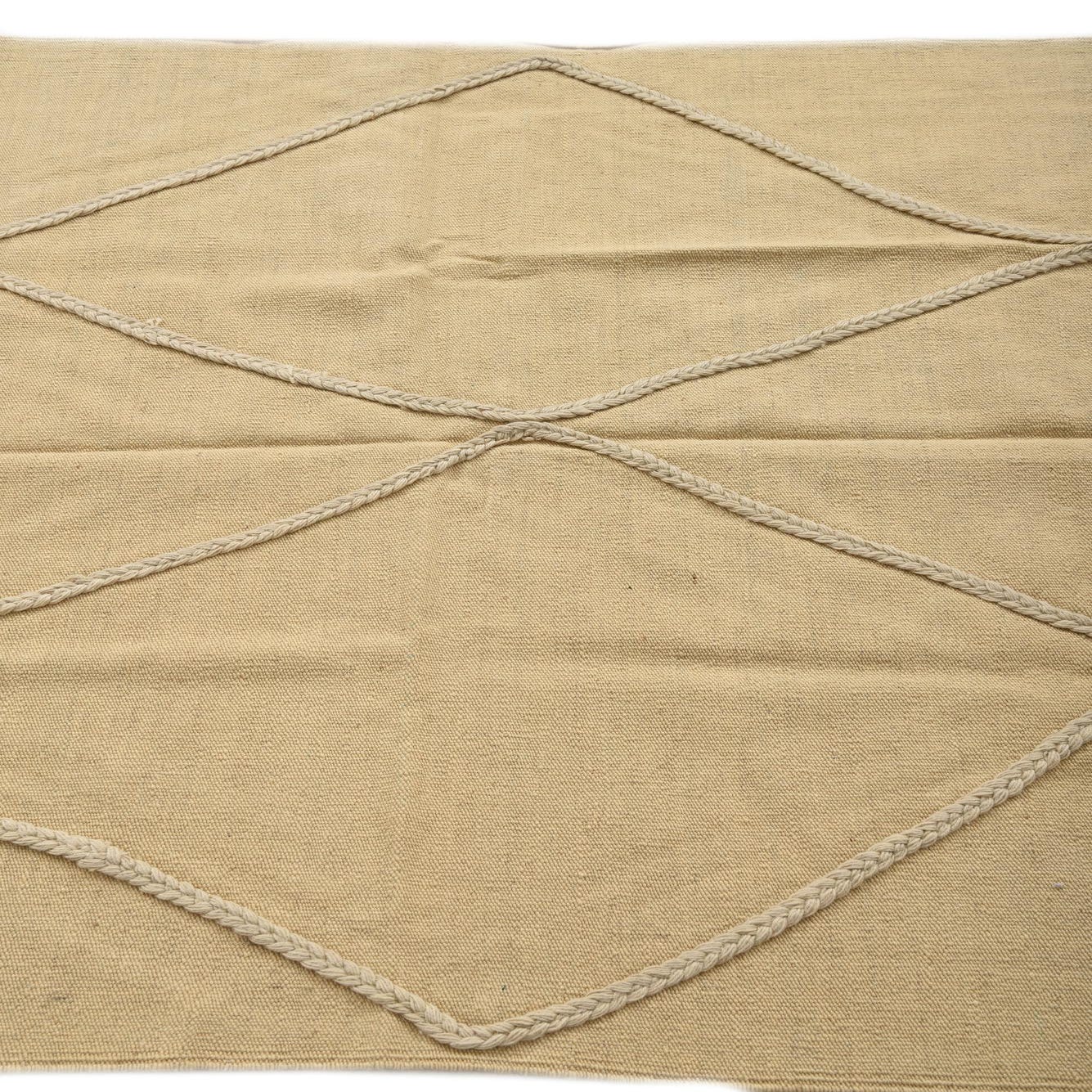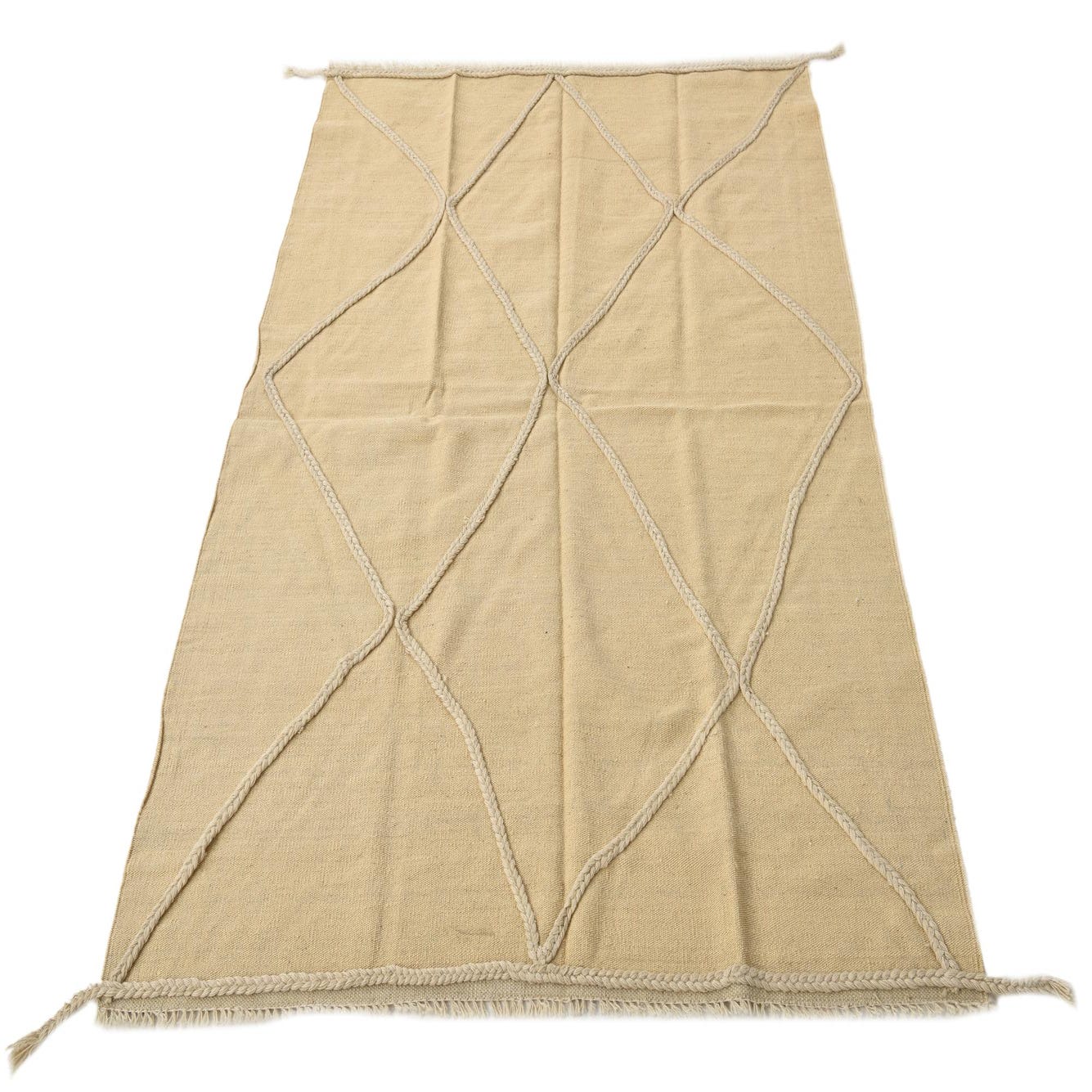 A 4x6 rectangular Kilim Modern rug from Rugs.com, featuring a light brown flatweave wool base with a cream tribal diamond pattern.