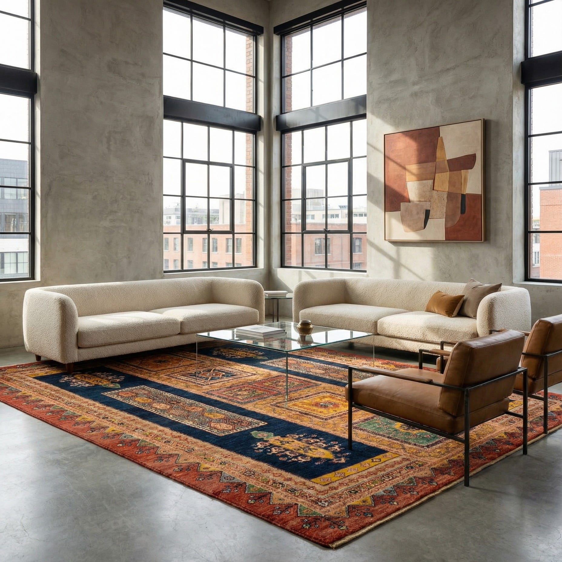 This rug's timeless design allows for versatile placements in a variety of interior settings. It’s well-suited for adding depth to minimalist decors or complementing the richness of traditional furnishings. The Luribaft would serve as a beautiful anchor in a living room, a distinguished presence in a home office, or as an inviting feature in a cozy dining area. The wool craftsmanship brings both durability and a touch of artisanal elegance to any space it occupies.
