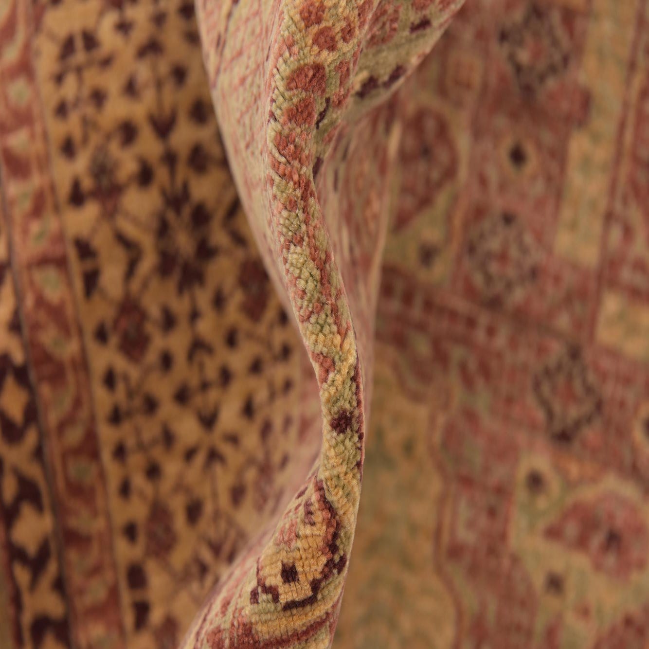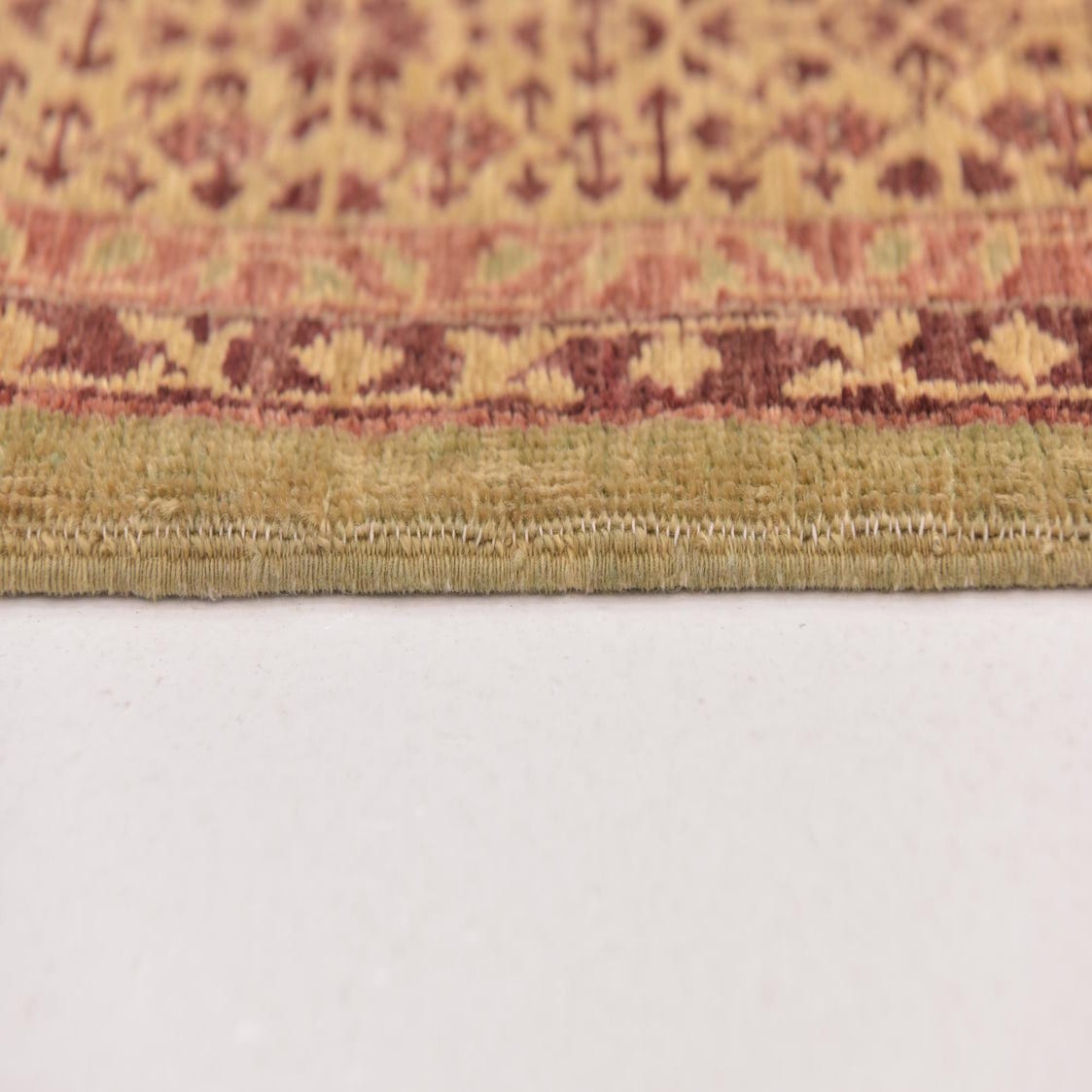 The fringe detail adds an extra touch of traditional craftsmanship, framing the rug with a finished look. This rug’s design and color scheme make it suitable for a variety of interior styles, including traditional, transitional, and even modern spaces that seek a touch of historic elegance. Its medium-sized dimensions allow it to fit comfortably in living rooms, home offices, or small dining areas, complementing wood floors, neutral color schemes, and antique furniture with grace. The Mamluk Ziegler’s combination of durability and aesthetic versatility ensures it is a tasteful choice for both functional necessity and design indulgence.