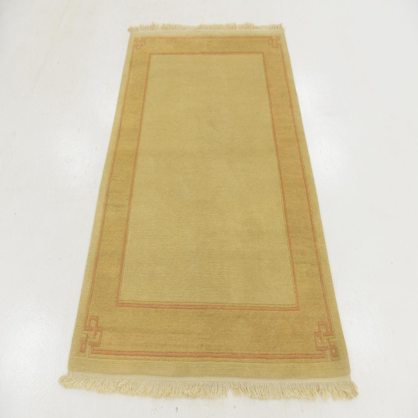 The rug showcases a simple yet sophisticated pattern with a geometric Greek key motif in the border, which adds a touch of elegance without overwhelming the design. With fringe detailing on the ends, this rug offers an additional element of classic styling.