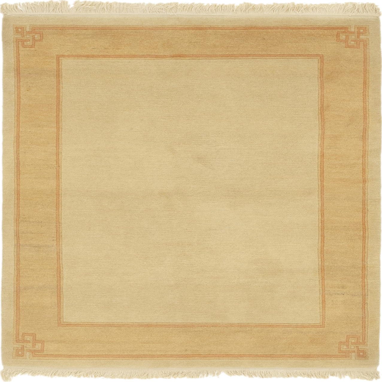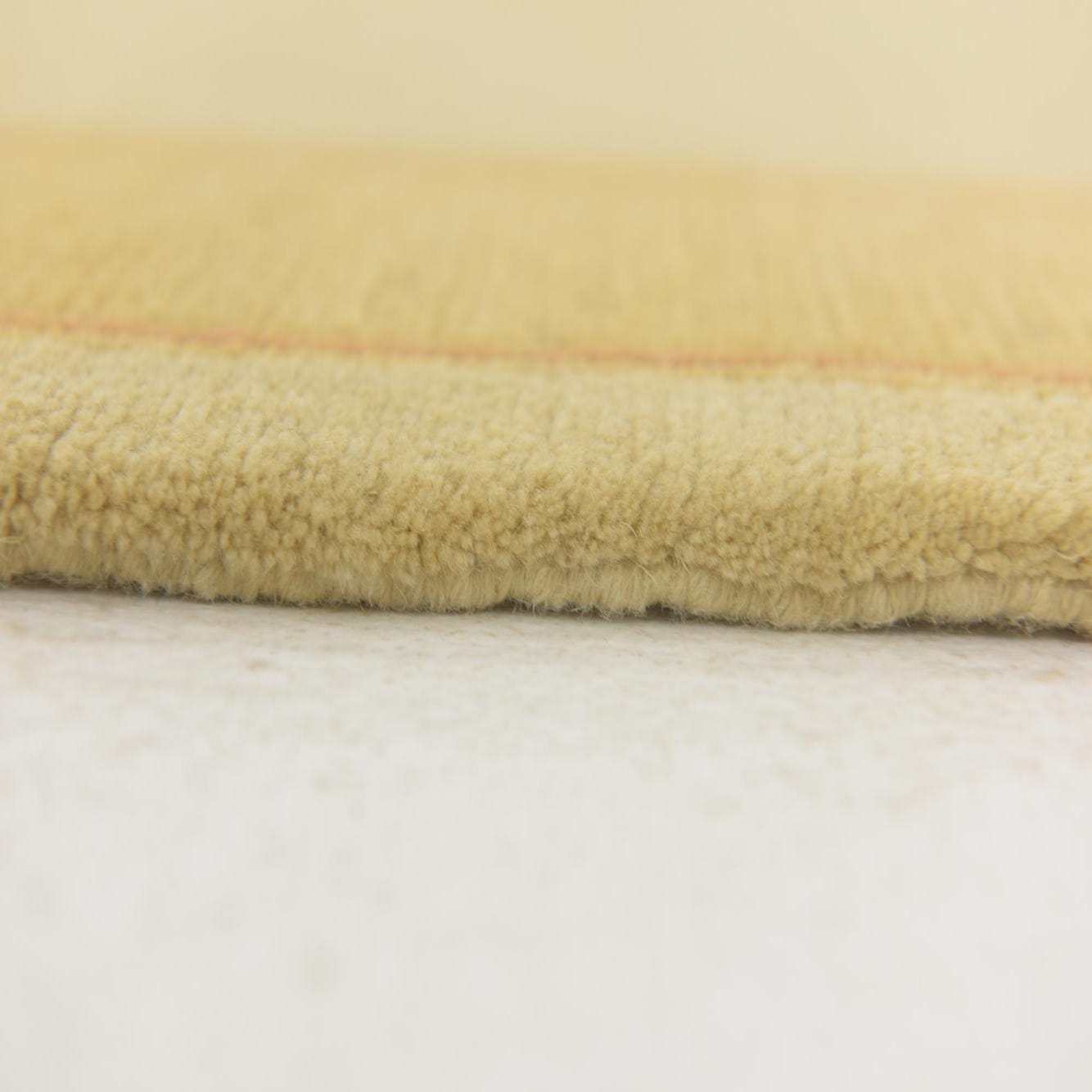 The Nepal Collection offers a hand-knotted rug crafted from 100% wool, providing a natural and durable addition to any space. This 4x6 rug features a serene beige background, complemented by a tasteful border in cream, gold, and orange hues, creating a subtle yet inviting palette. The texture is rich and soft to the touch, resulting from the quality wool and traditional hand-knotting techniques used in its creation.