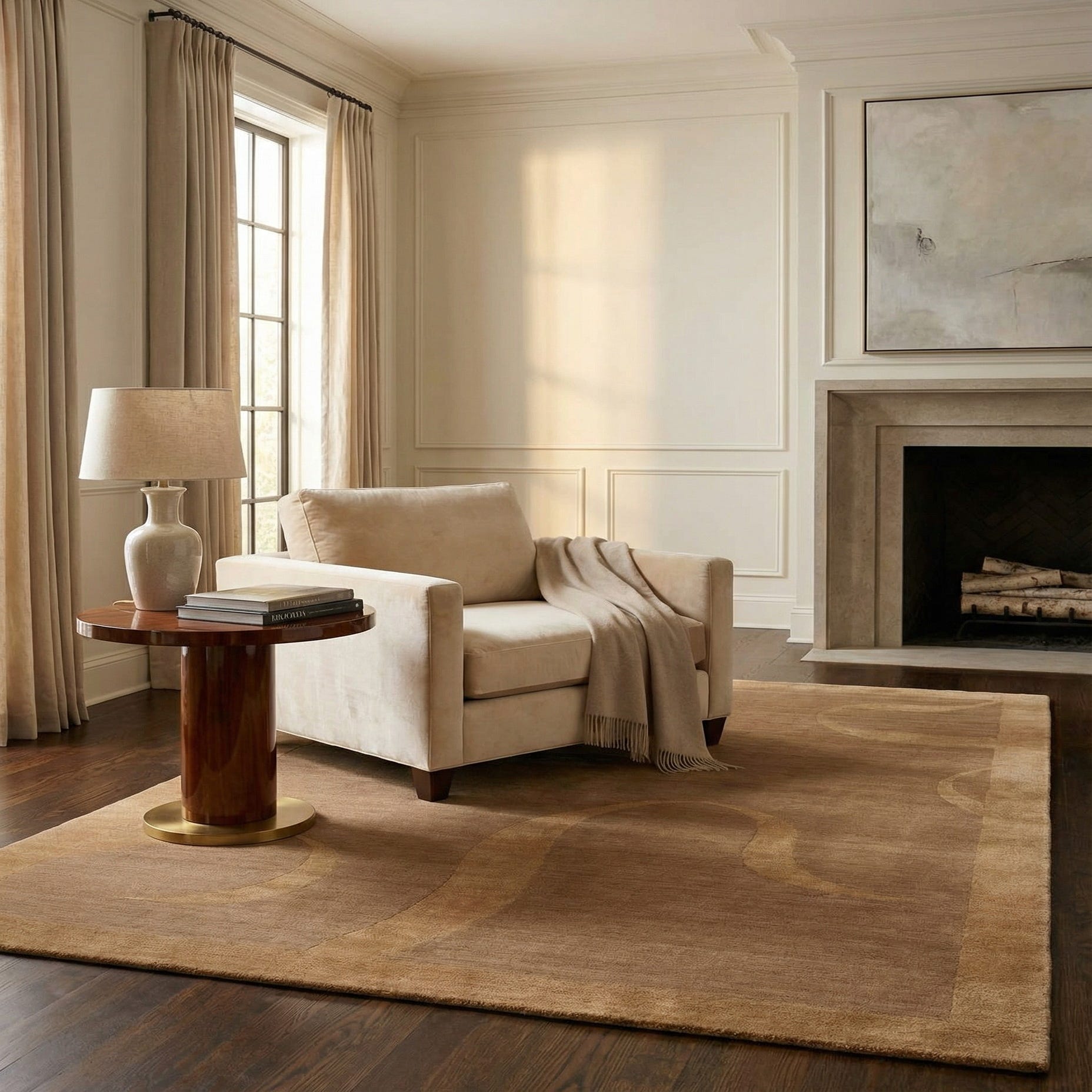 With its understated pattern and earthy colors, this rug is well-suited for contemporary and minimalist interiors, complementing spaces that feature natural wood elements, soft white furnishings, or metallic accents. It can serve as a grounding piece in a living room under a coffee table, add a touch of refinement to an office, or bring a cozy feel to a bedroom.