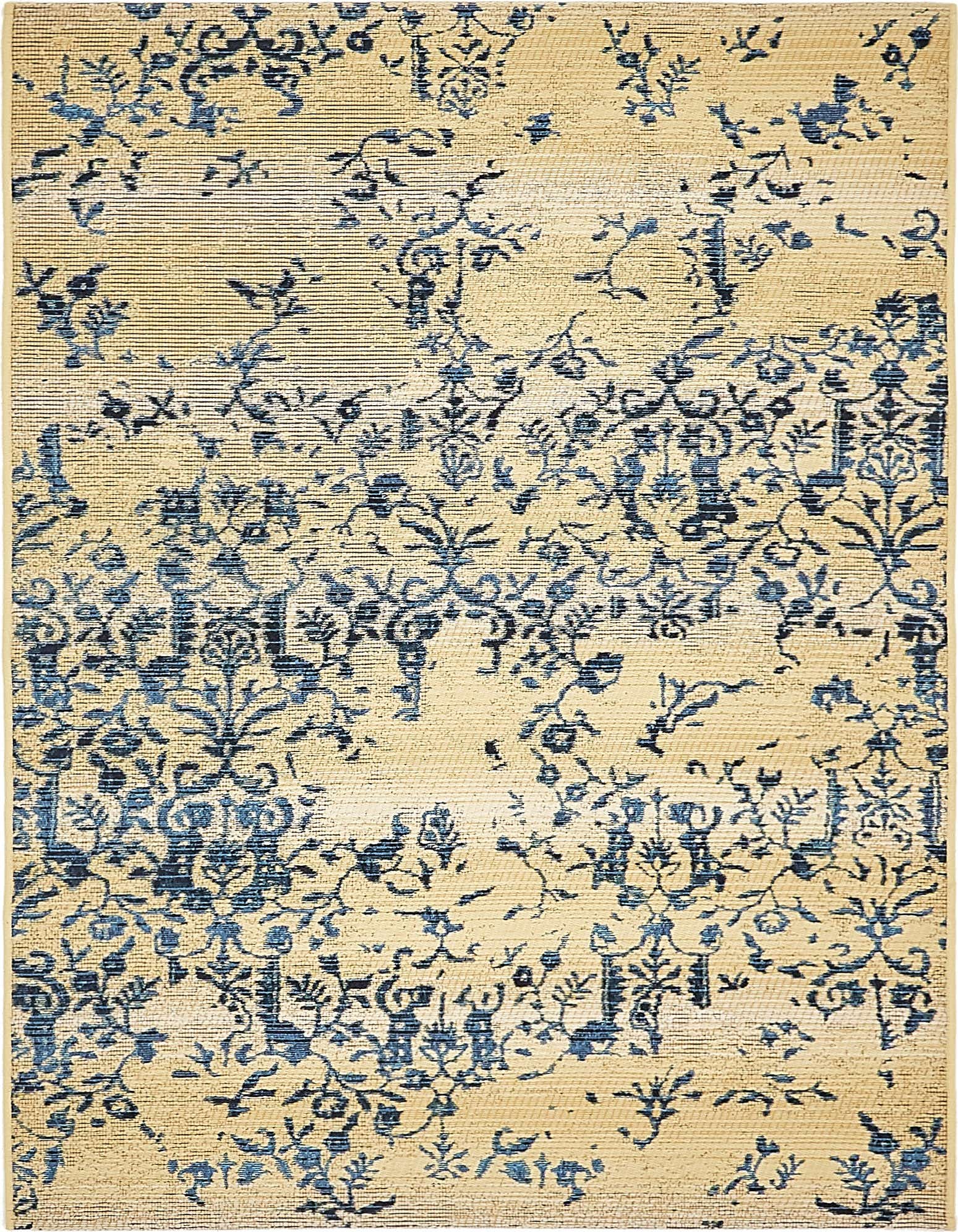 Primary color is Beige. Colors in this rug include: Beige, Blue, Navy Blue.