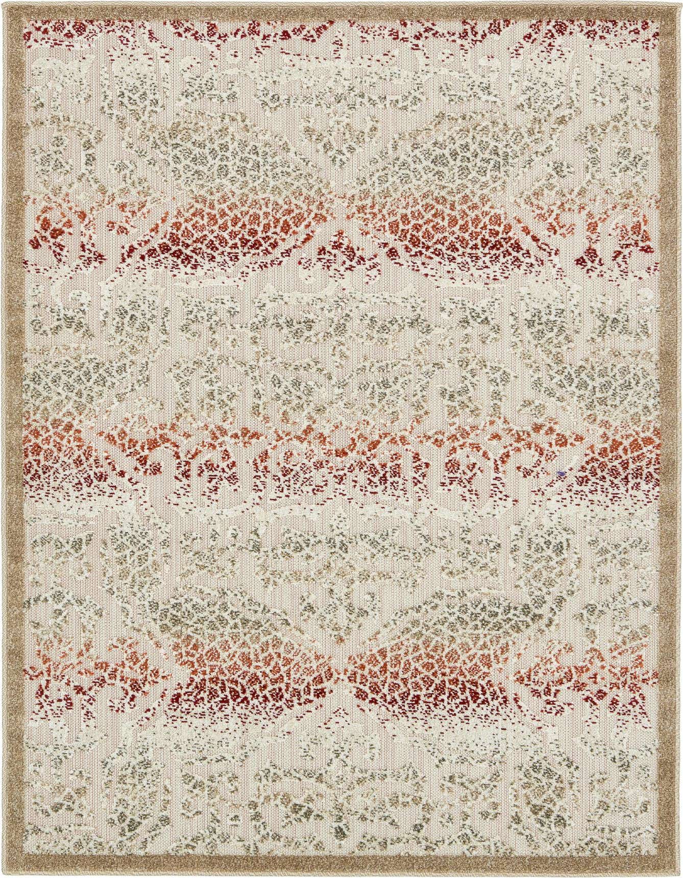 Primary color is Beige. Colors in this rug include: Beige, Brown, Burgundy, Cream, Orange.