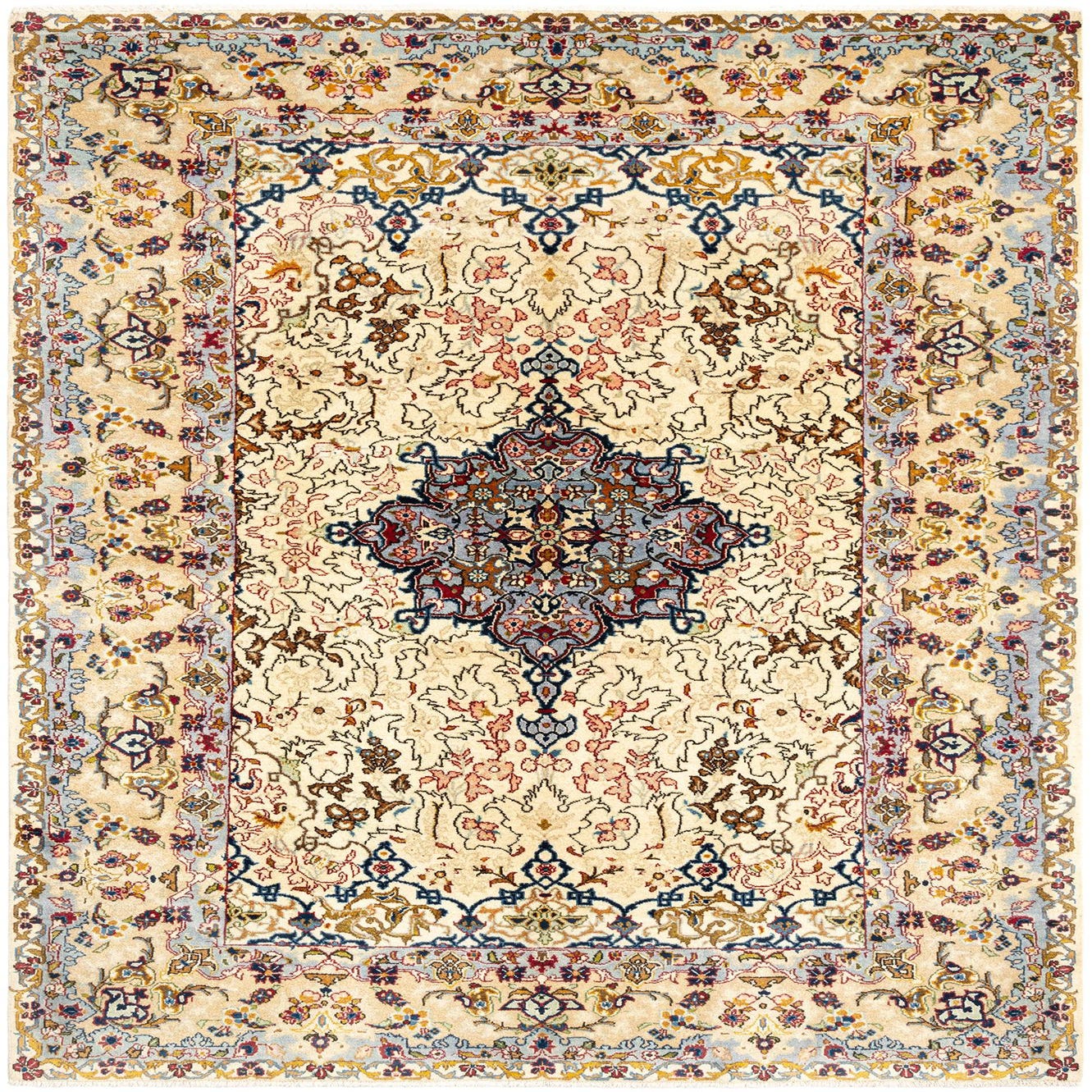 Primary color is Beige. Colors in this rug include: Beige, Cream, Light Brown, Blue, Green, Orange, Red, Olive, Pink.