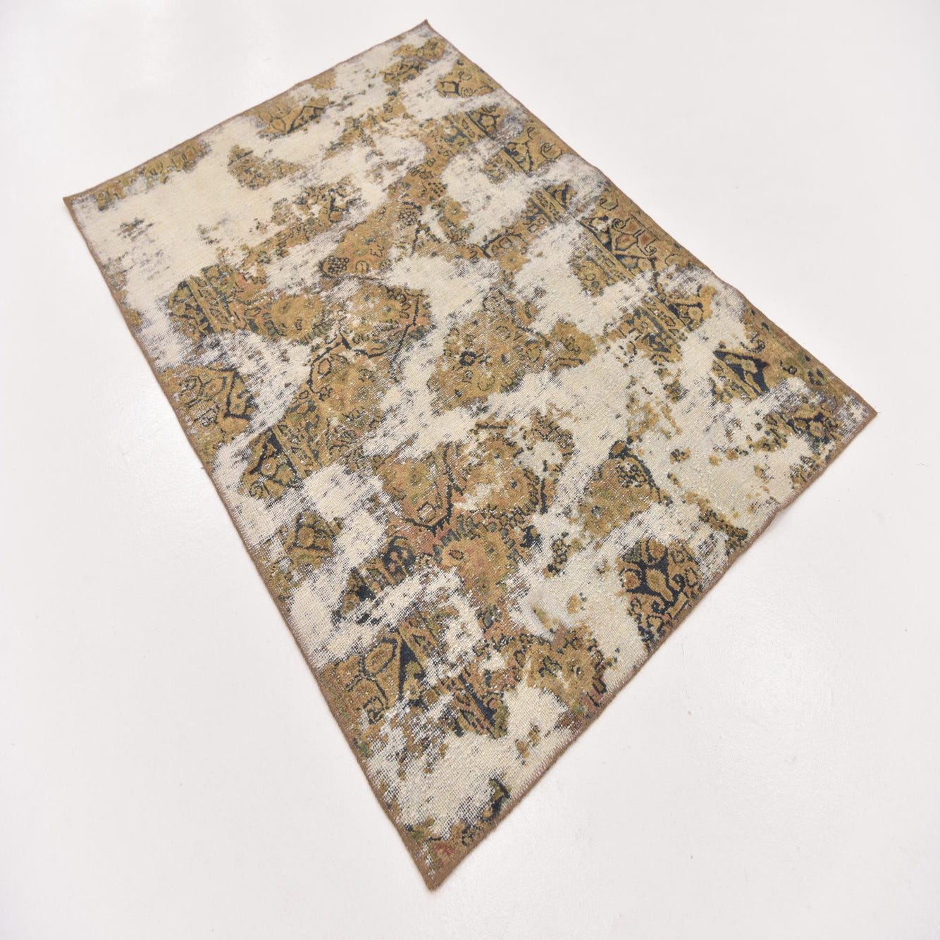 This Persian Ultra Vintage rug is an antique Persian Rug that has been washed, over-dyed, and then shaved down to a low pile. Look at the detail pictures to fully appreciate the uniqueness of this piece.