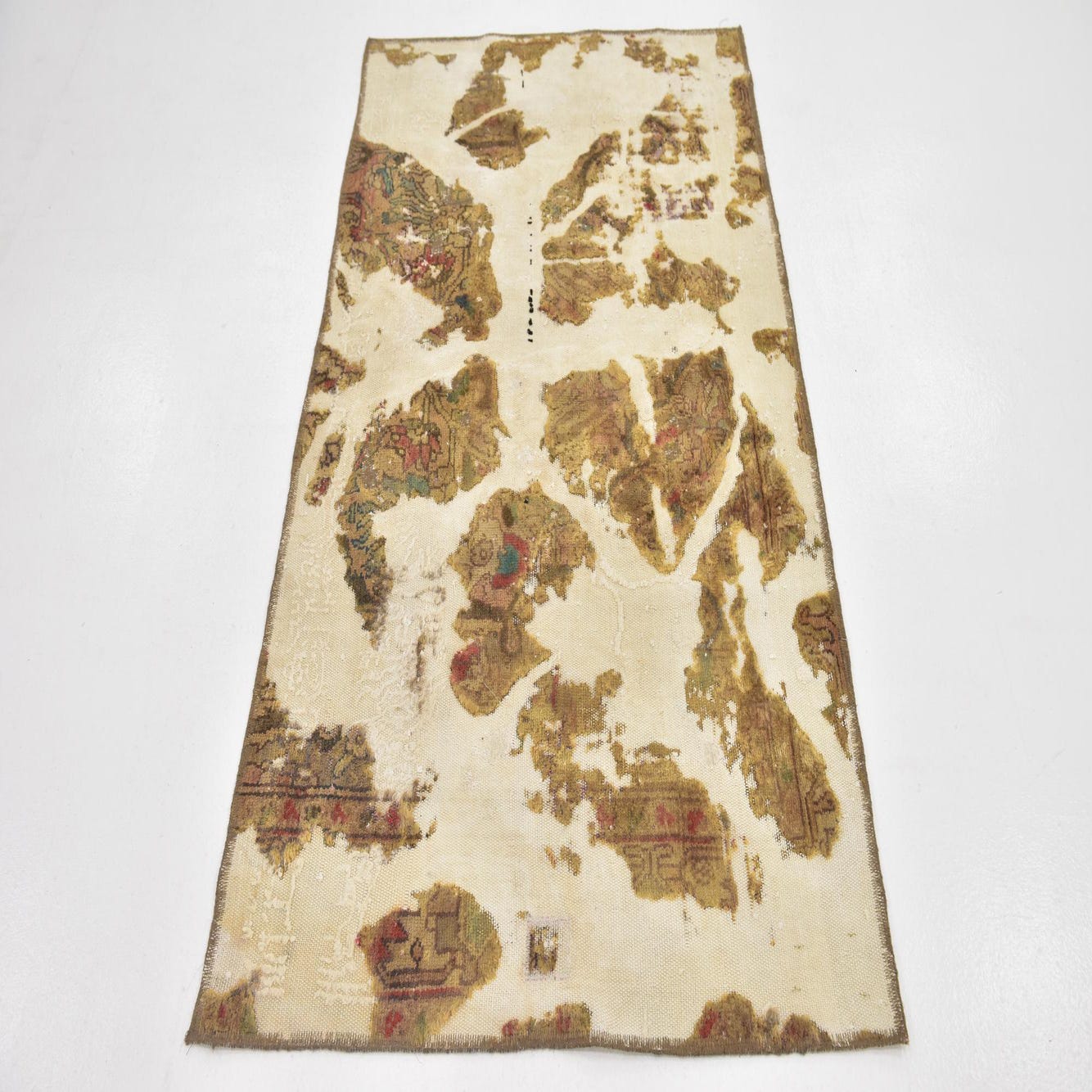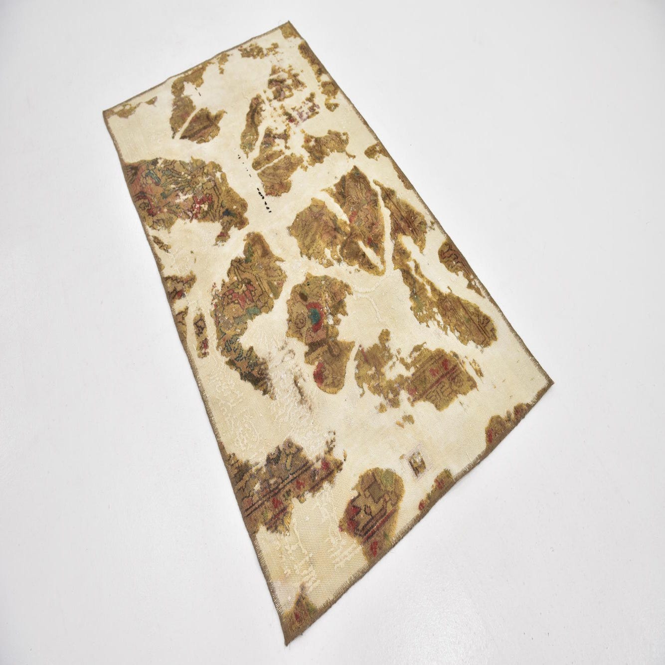 This Persian Ultra Vintage rug is an antique Persian Rug that has been washed, over-dyed, and then shaved down to a low pile. Look at the detail pictures to fully appreciate the uniqueness of this piece.