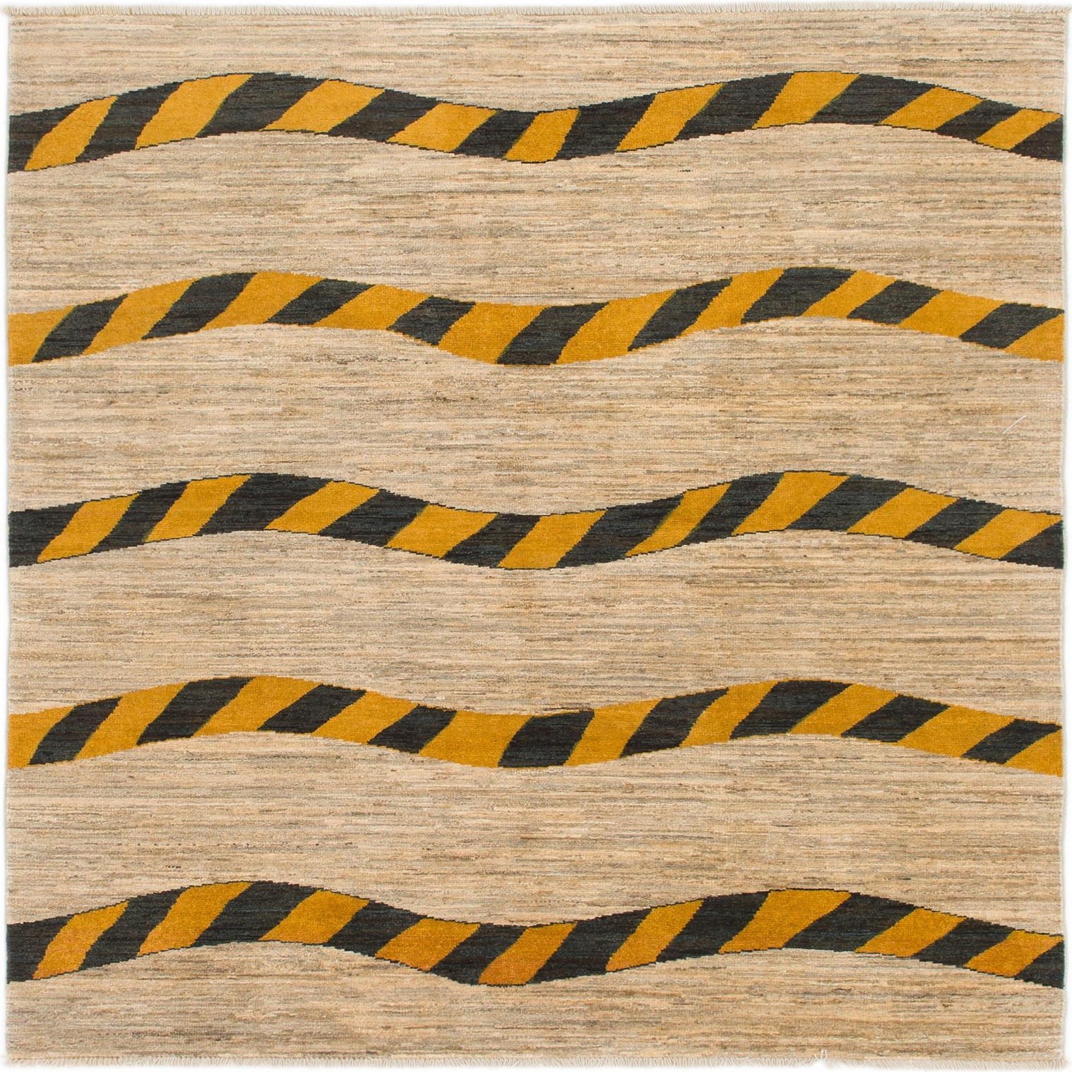 Primary color is Beige. Colors in this rug include: Beige, Black, Gray, Yellow.