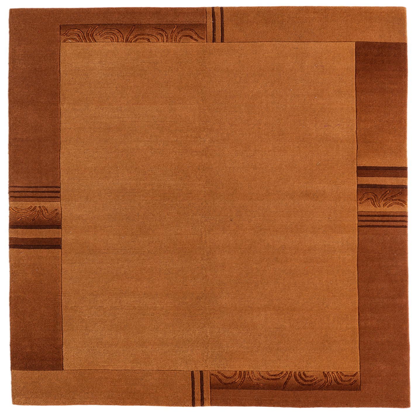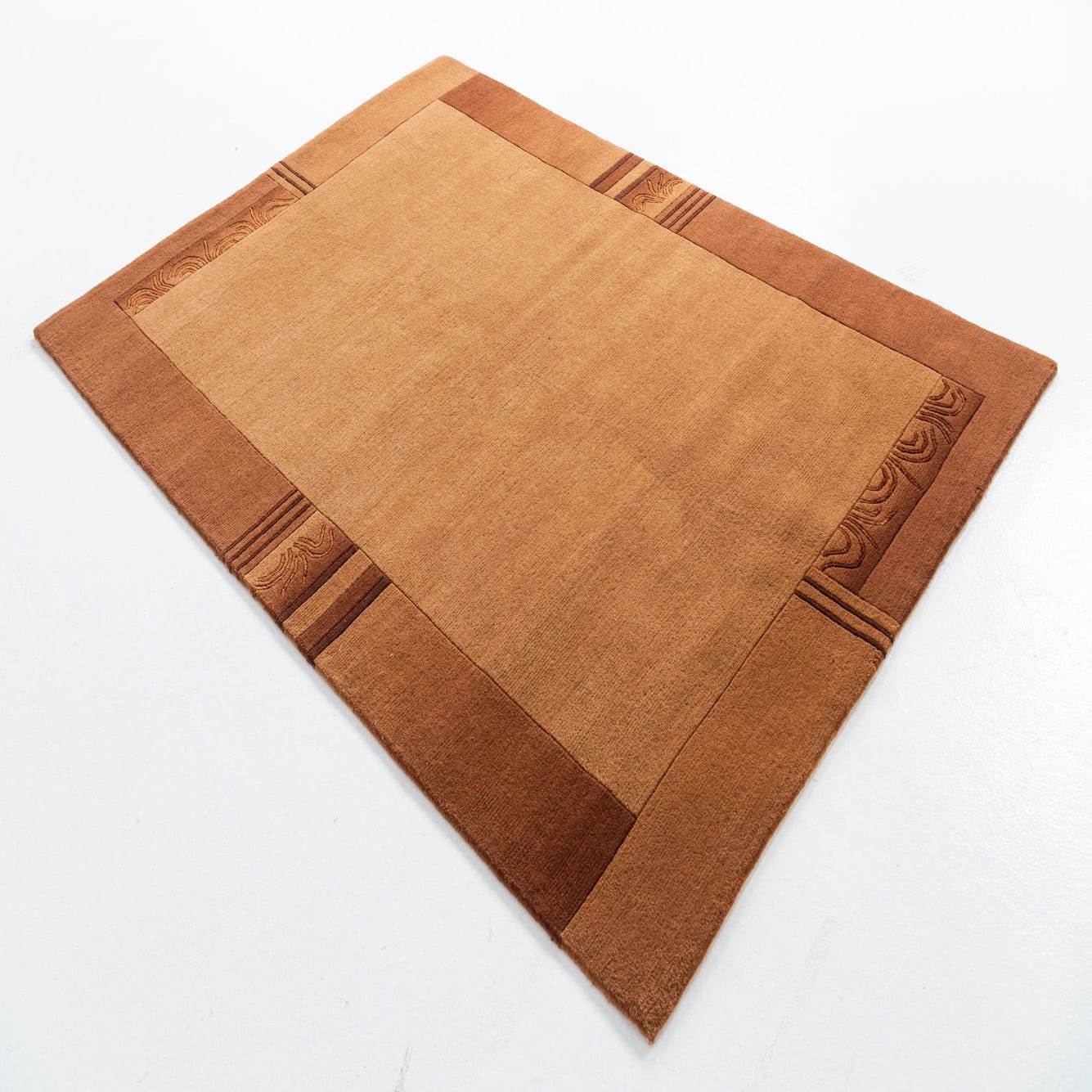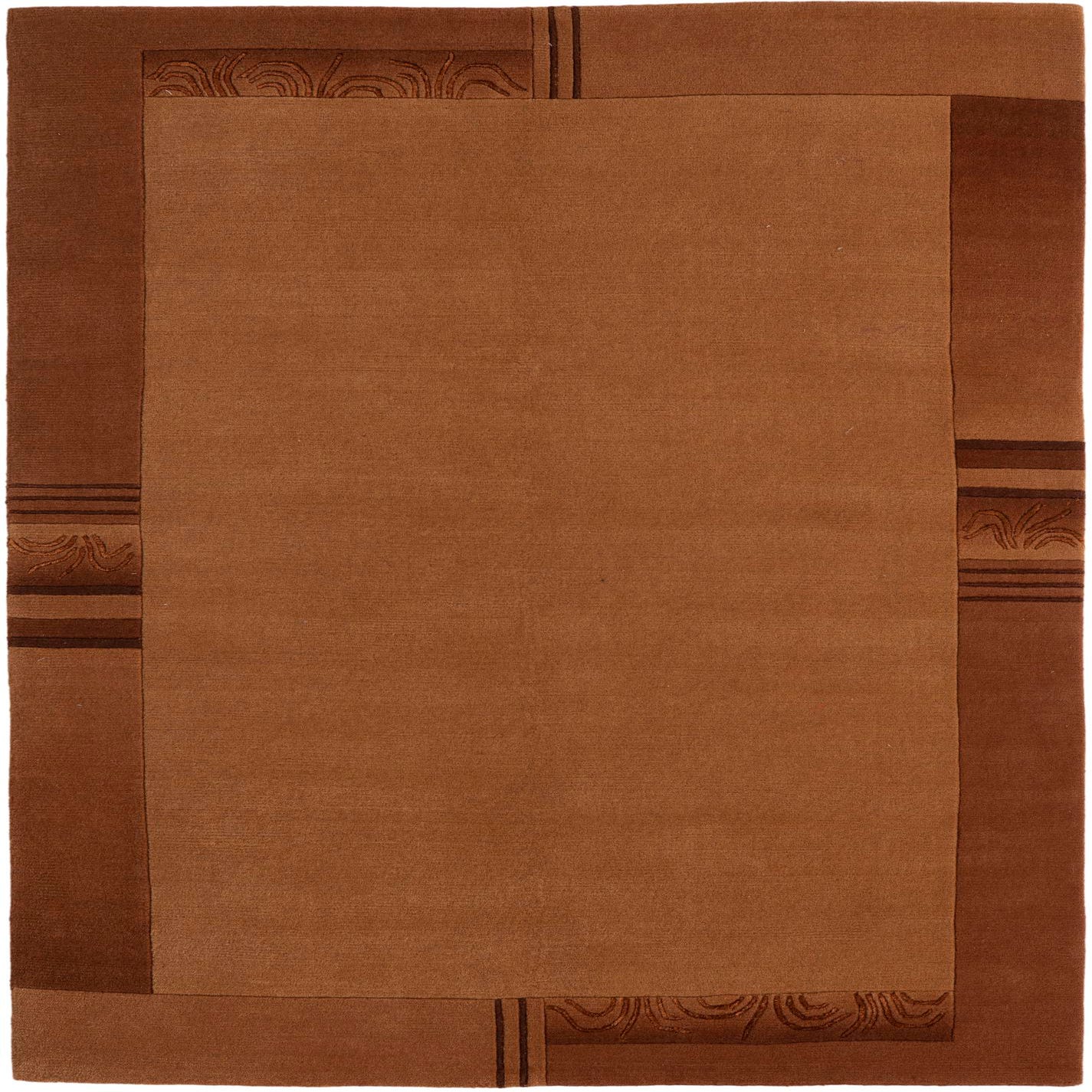 A 5x7 rectangular Nepal collection rug in varying shades of brown, featuring a solid center and a border with subtle modern oriental patterns.