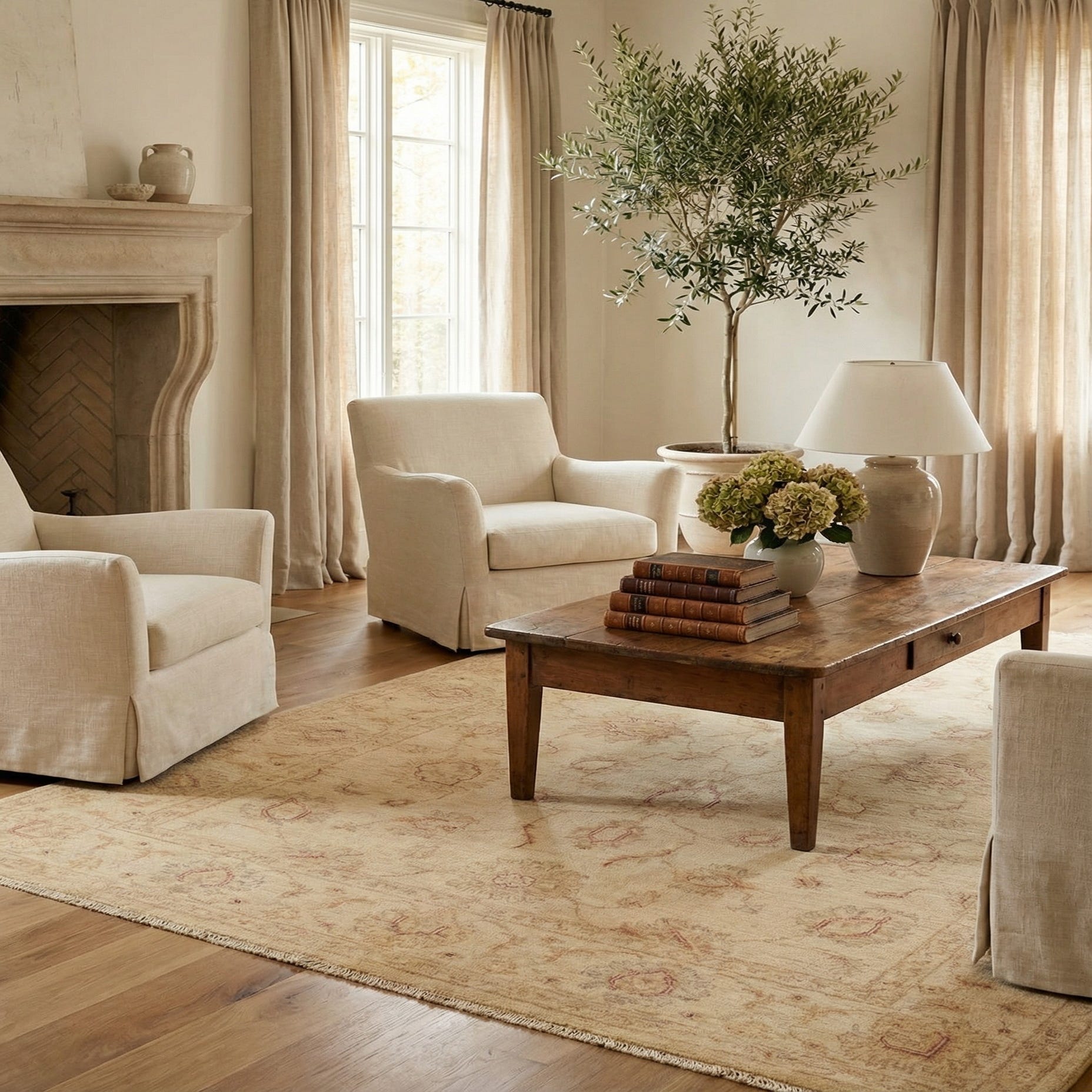 With its versatile color palette and timeless design, this rug can seamlessly integrate into a variety of interior settings. It would be especially suitable for spaces that aim to evoke a sense of calm and elegance, such as a traditional living room, a refined office, or a serene bedroom. The soft shades of this rug can complement neutral furniture and natural materials, making it an excellent choice for interiors that favor understated luxury and a grounded aesthetic.