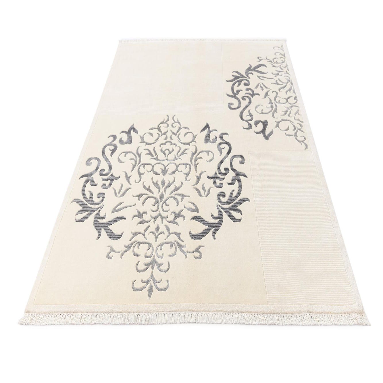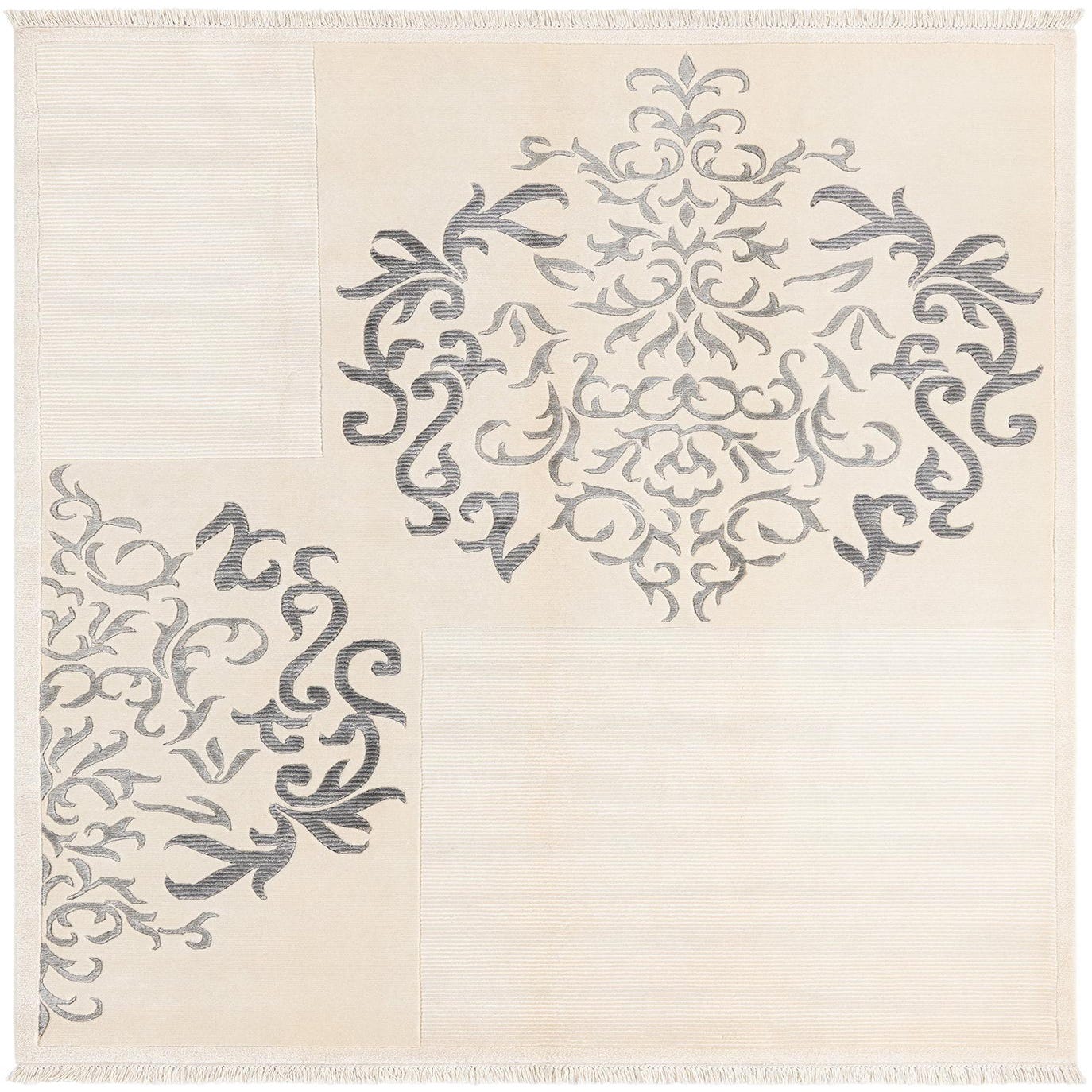 Primary color is Beige. Colors in this rug include: Beige, Gray, Ivory, Silver.